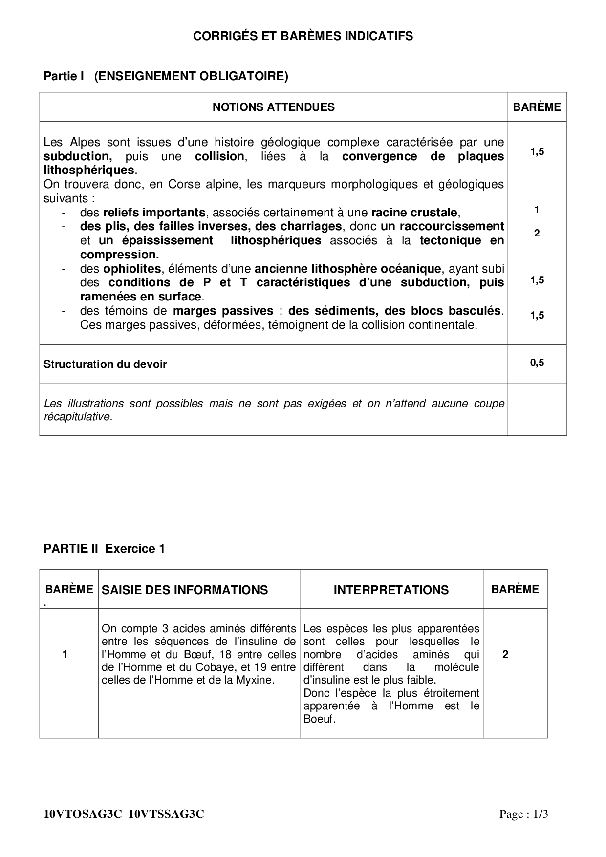 Bac S SVT Antilles-Guyane 2010 (Session de remplacement) - Corrigé
