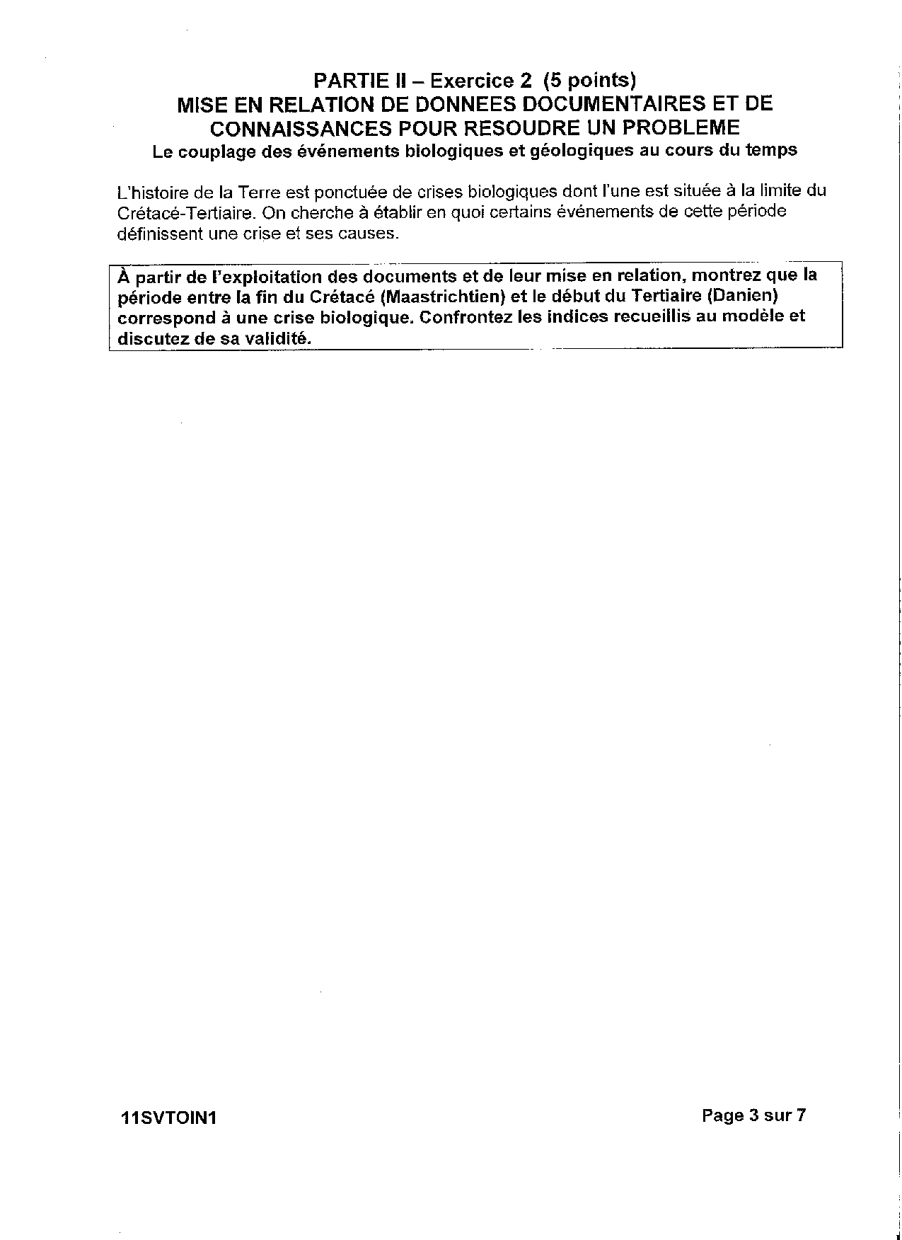 Bac S SVT Pondichéry 2011 - Sujet