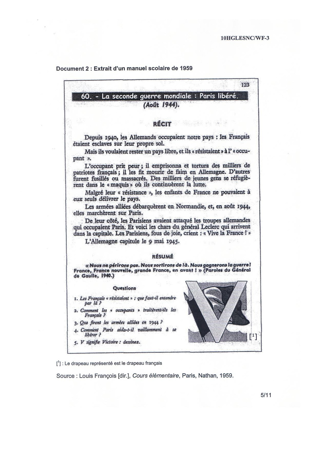 Bac ES-L Histoire Géographie Nouvelle-Calédonie 2010 (Session de remplacement) - Sujet