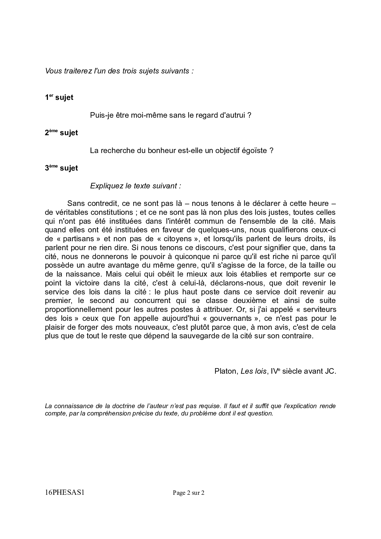 Bac ES Philosophie Amérique du Sud 2016 - Sujet