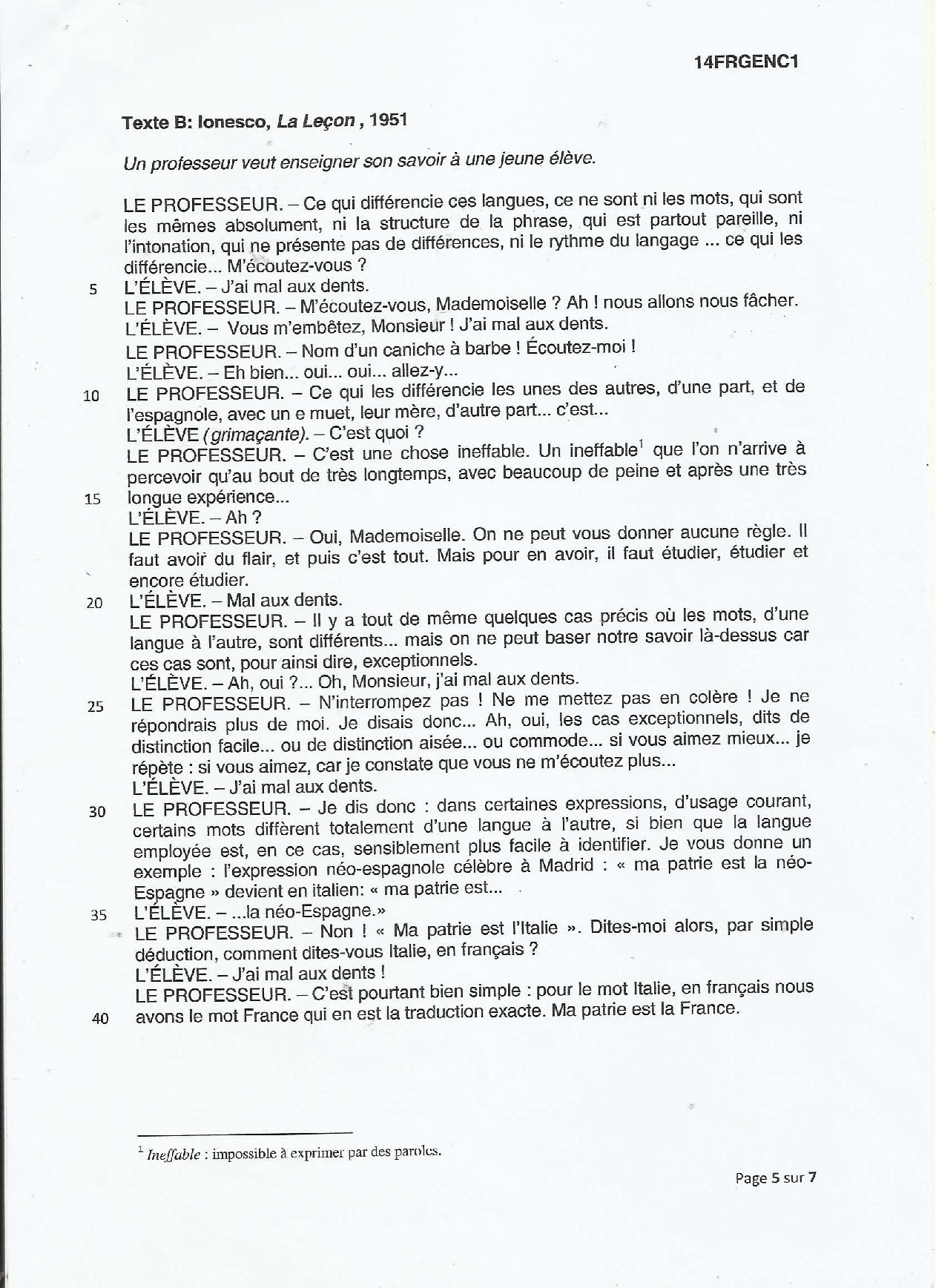 Bac L Français (1ère) Nouvelle-Calédonie 2014 - Sujet