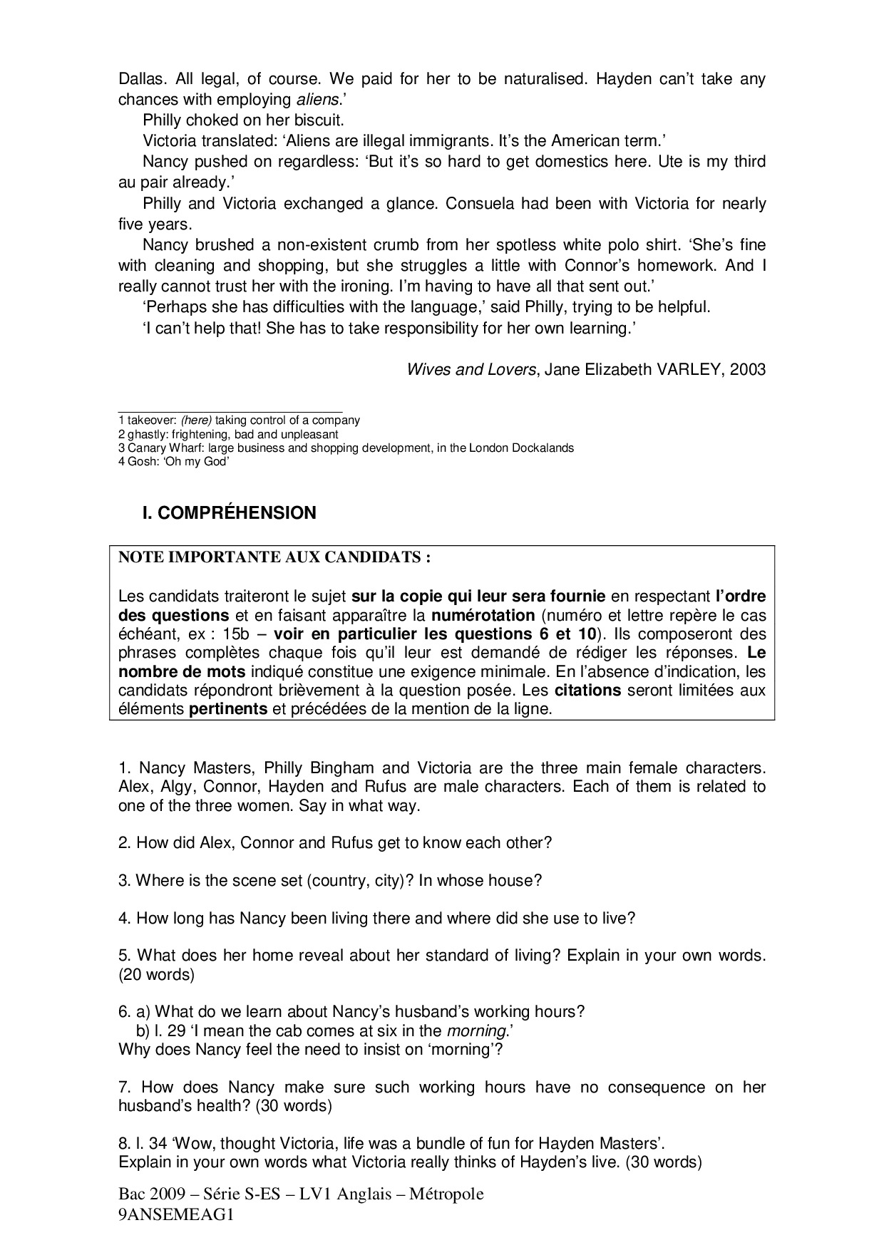 Bac S-ES Anglais LV1 Métropole 2009 - Sujet