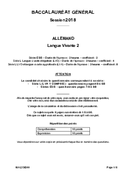 Bac S-ES-L Allemand LV2 Pondichéry 2018 - Sujet