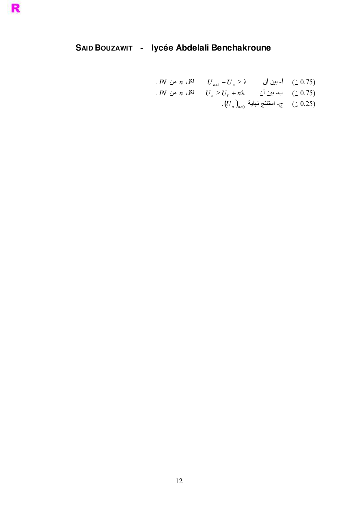 الامتحان التجريبي 4 - الرياضيات ثانية باك علوم وتقنيات (الموضوع)