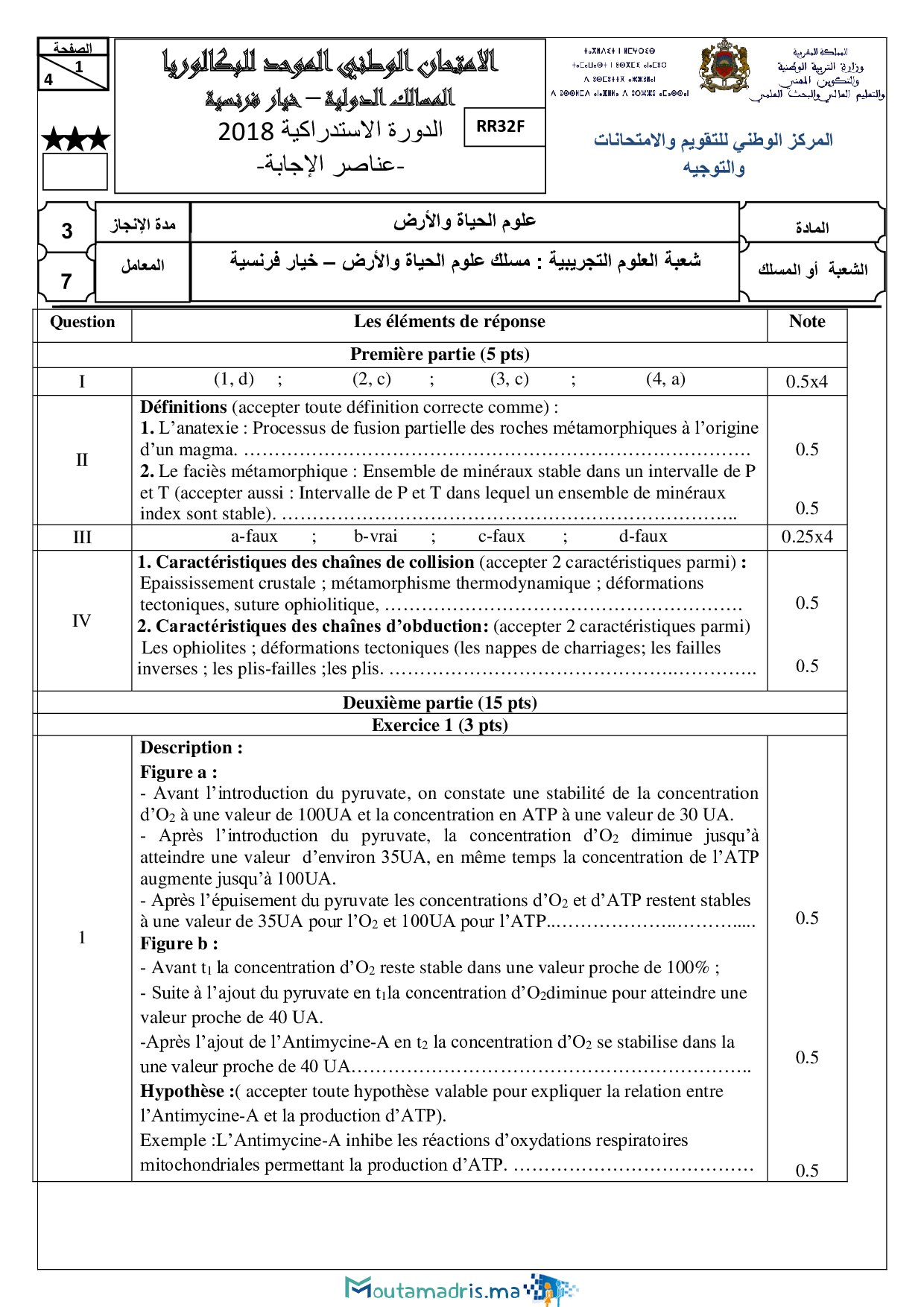 Examen National SVT 2ème BAC SVT 2018 Rattrapage - Corrigé