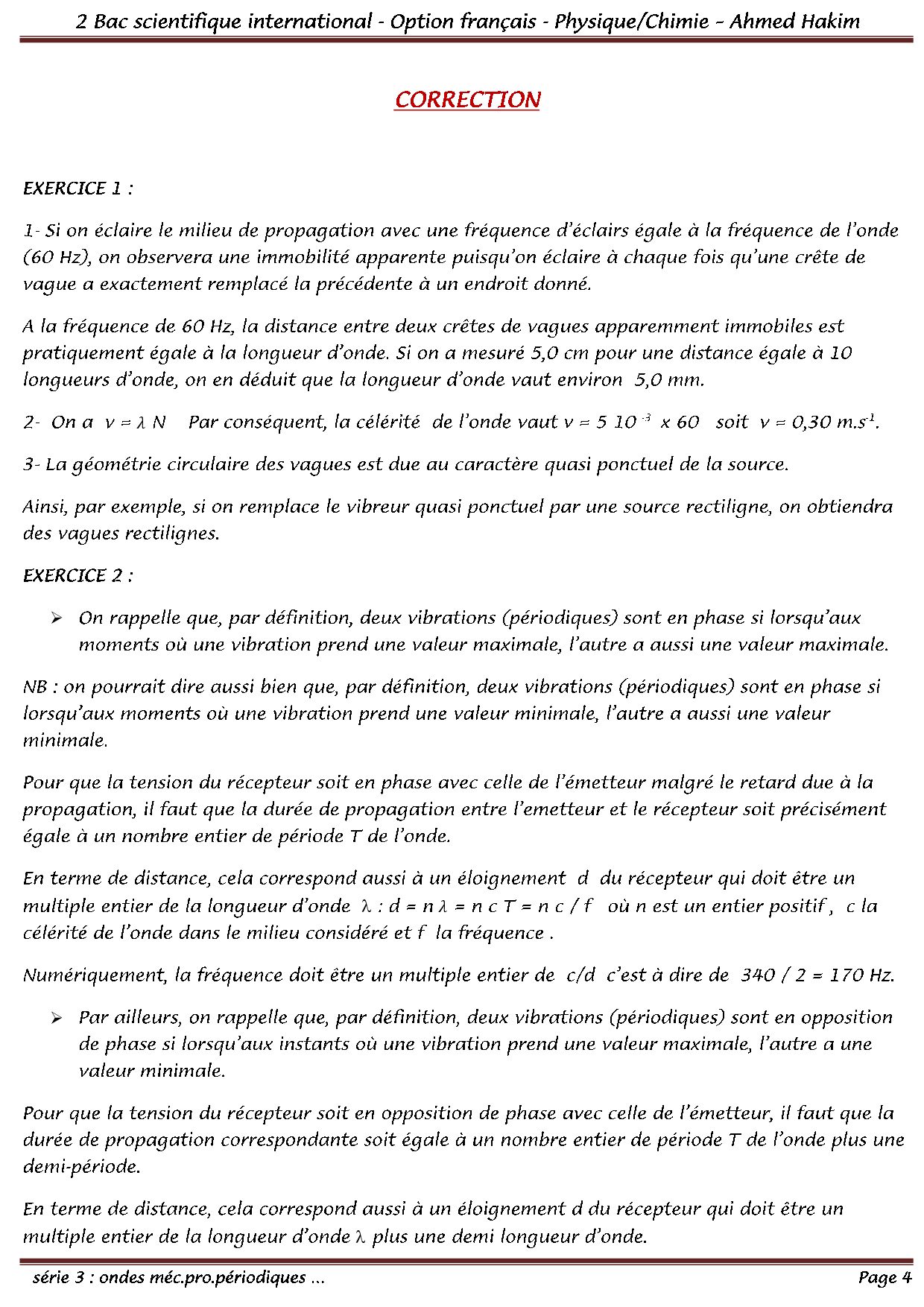 Les ondes mécaniques progressives périodiques - Corrigé série d'exercices 1