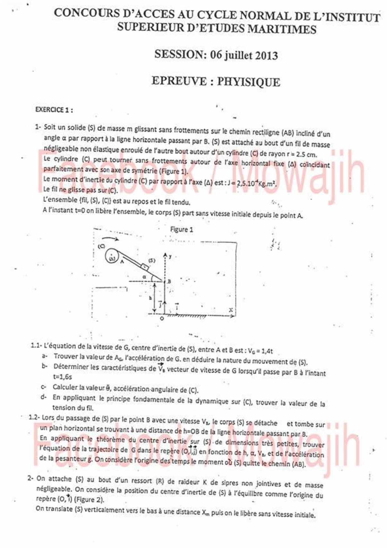 Concours d'entrée ISEM 2013 - Physique