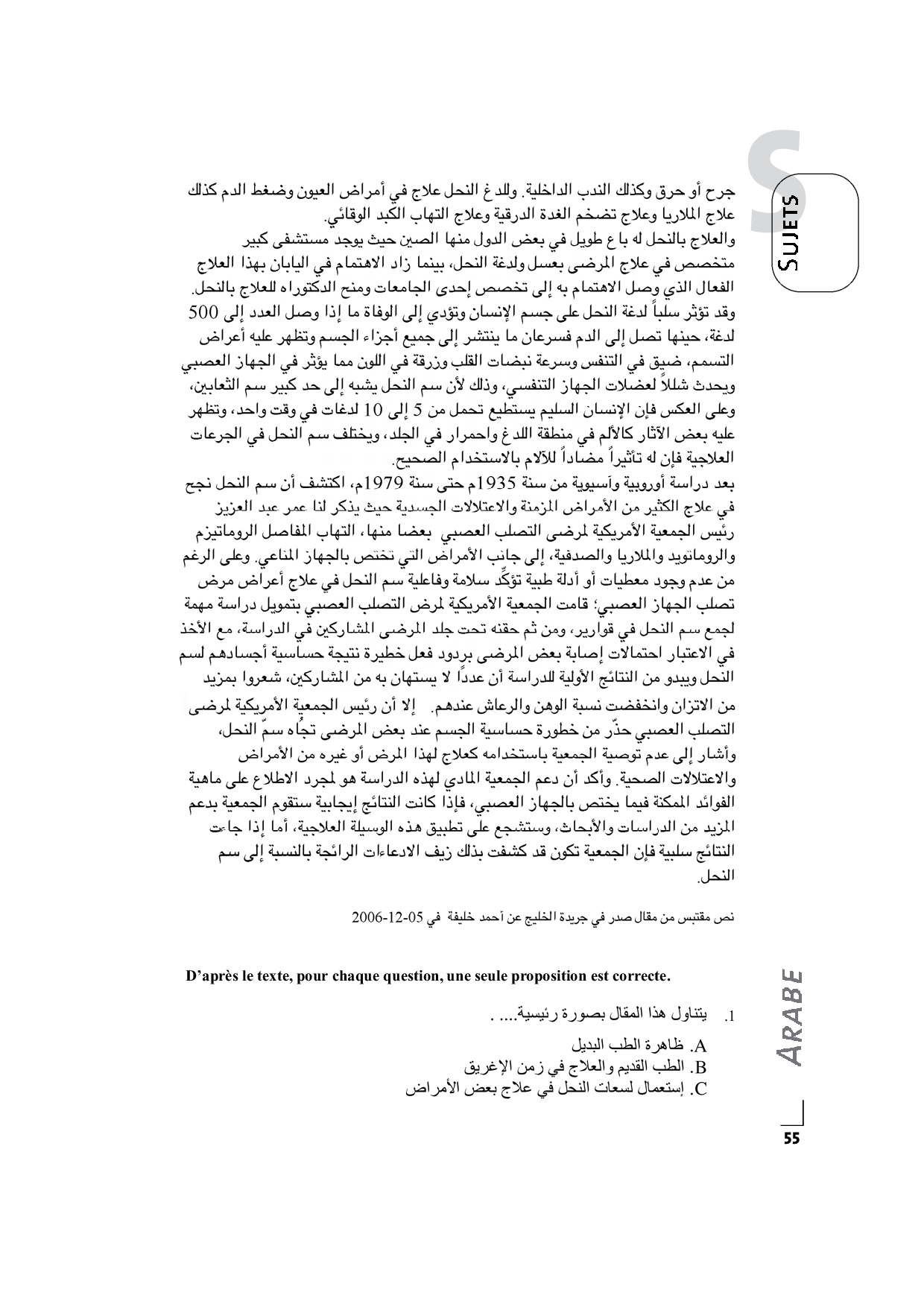 Concours SÉSAME 2007 - Arabe (Epreuve)