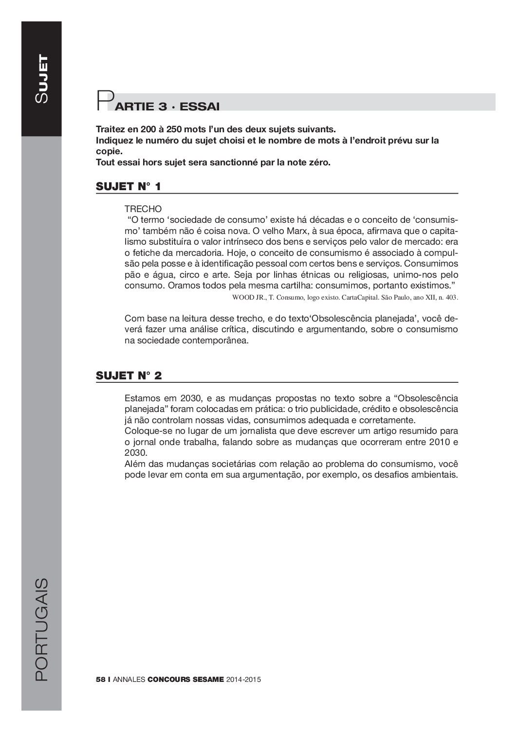 Concours SÉSAME 2014 - Portugais (Epreuve)