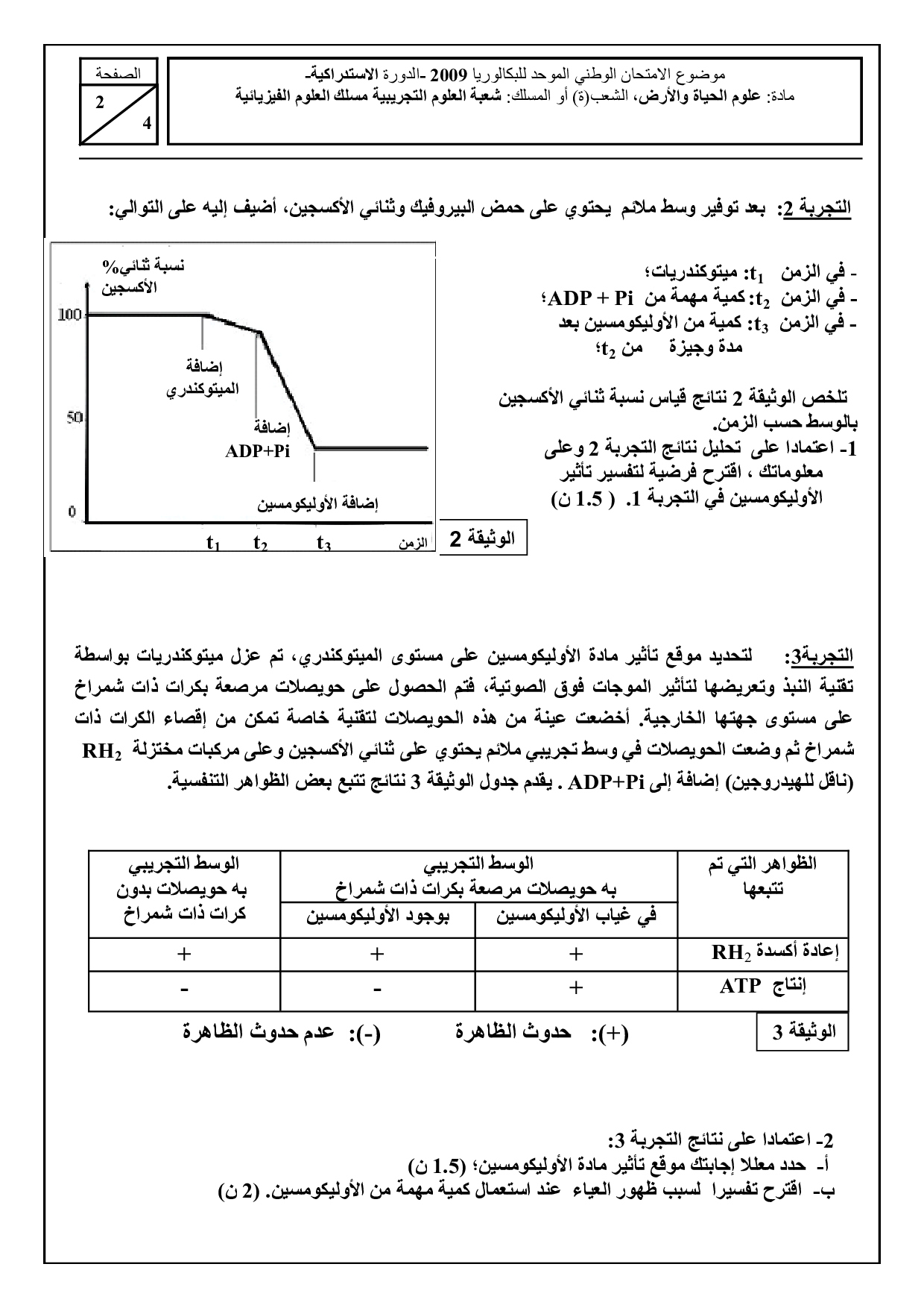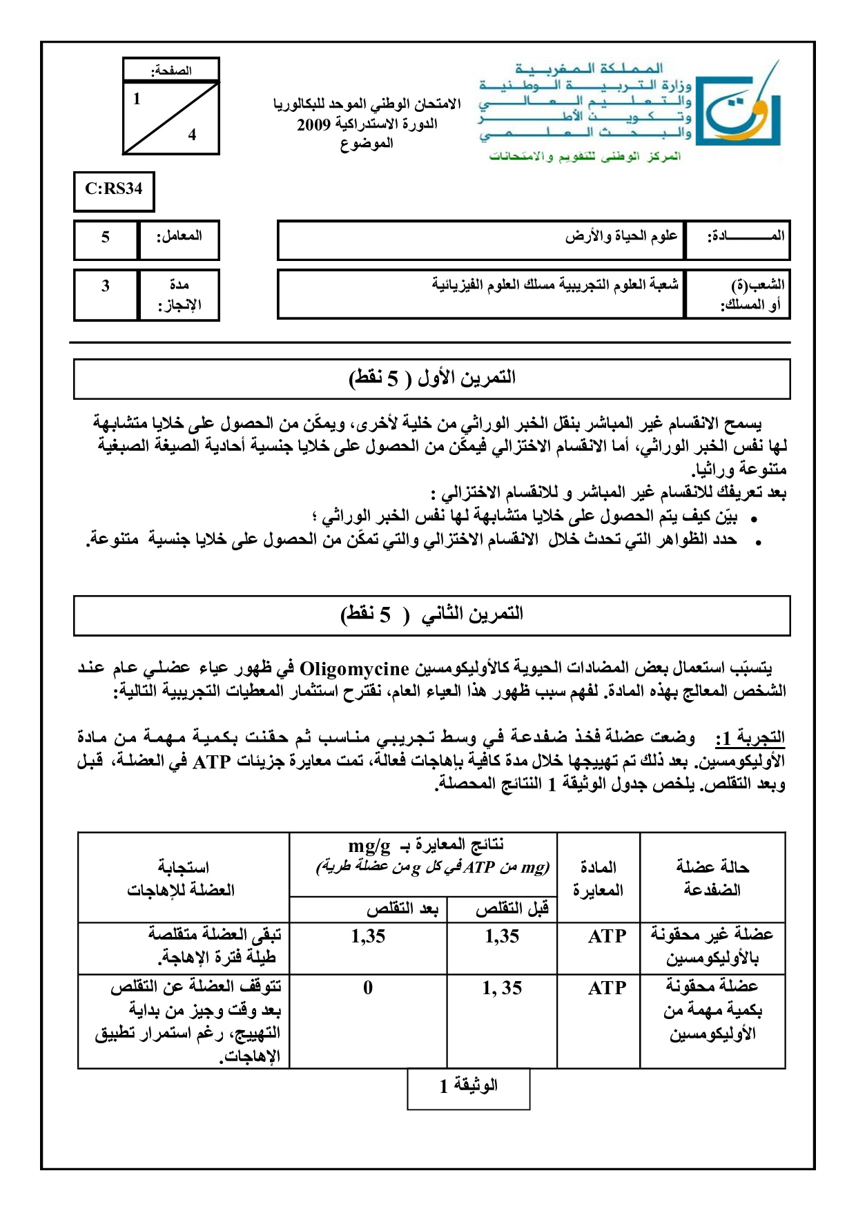 علوم الحياة والارض علوم فيزيائية 2009 الدورة الإستدراكية - الموضوع