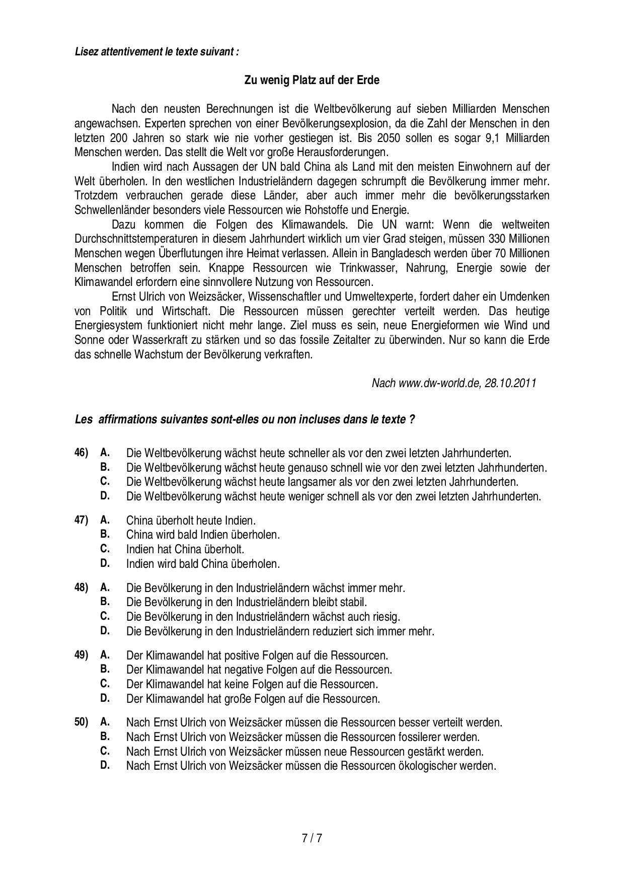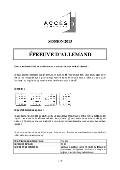 Concours ACCÈS 2013 - Allemand (Sujet)