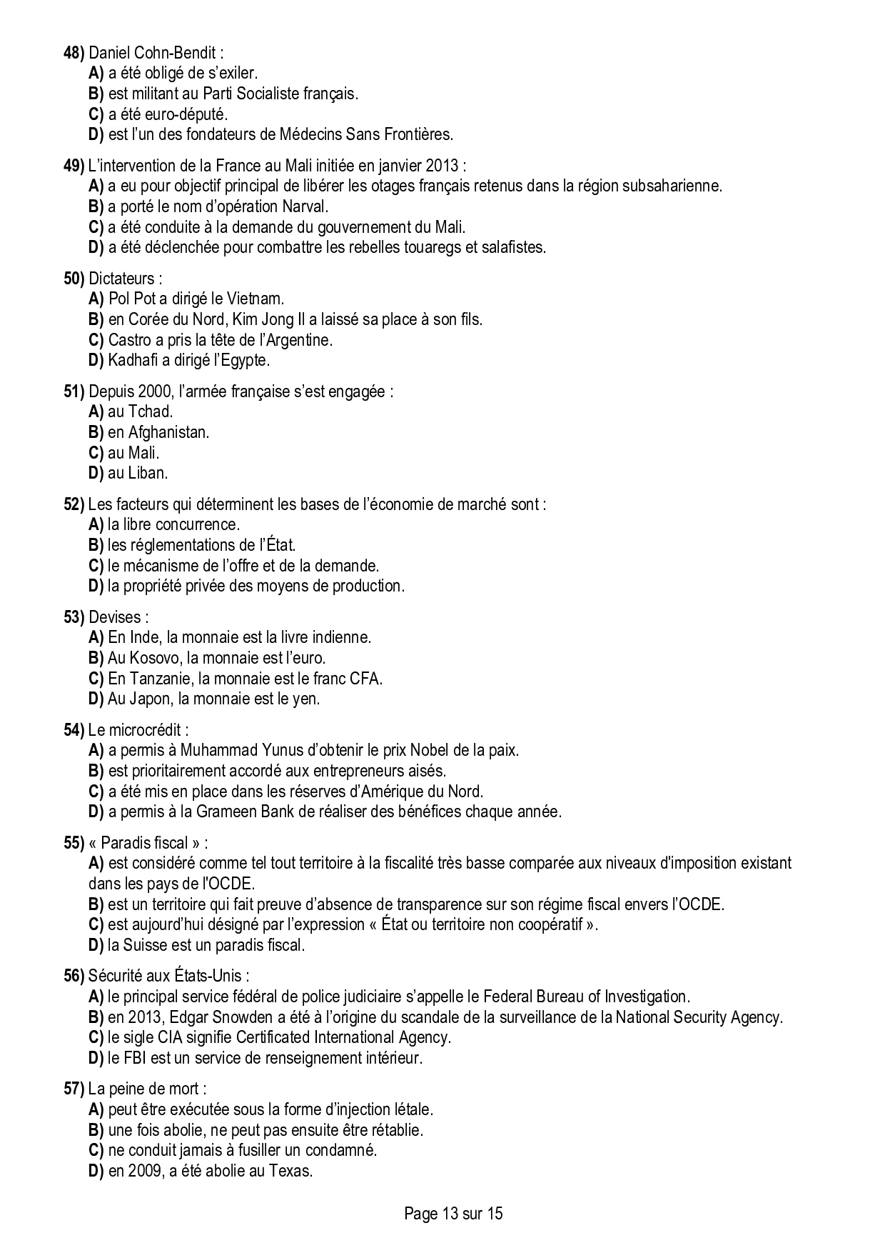 Concours ACCÈS 2014 - Ouverture culturelle (Sujet)
