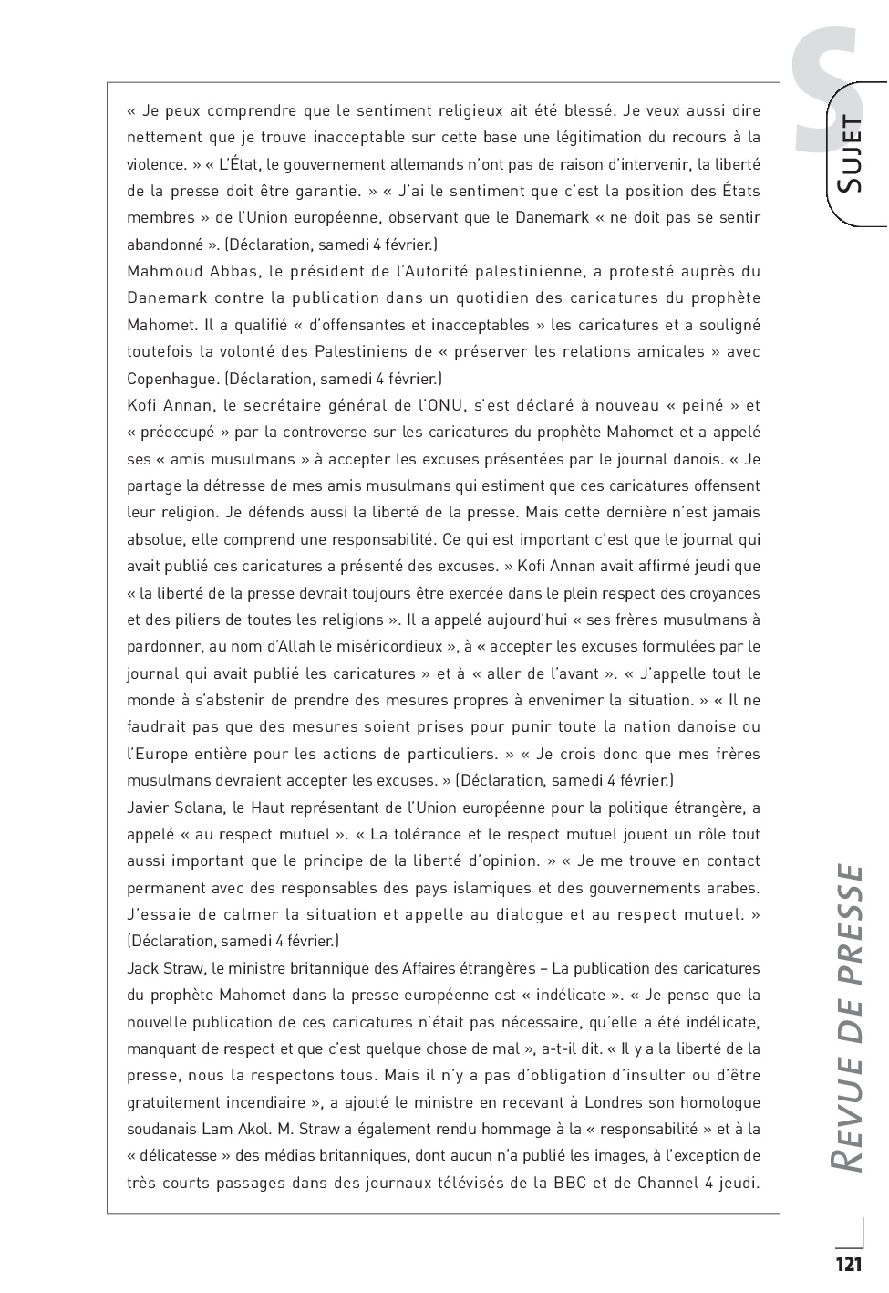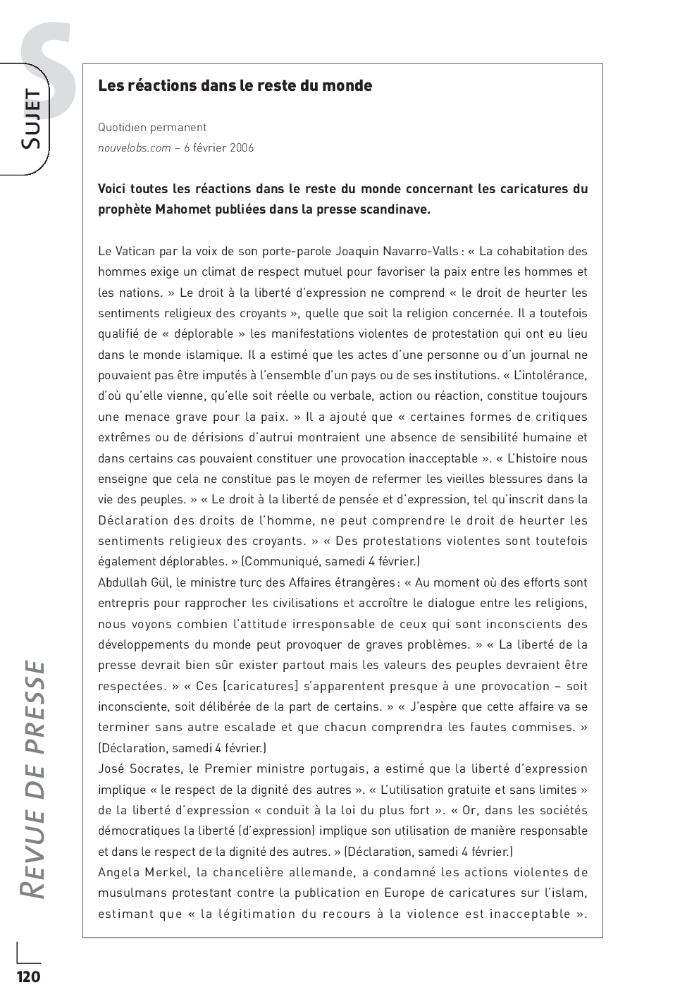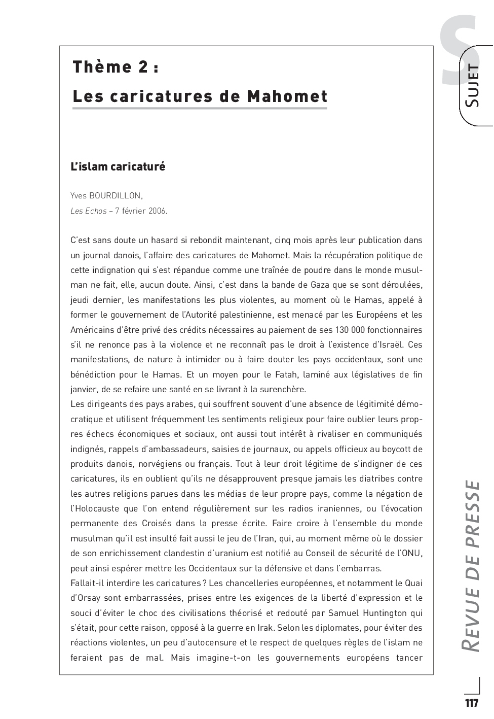 Concours PASS 2006 - Synthèse de revue de presse internationale (Sujet)