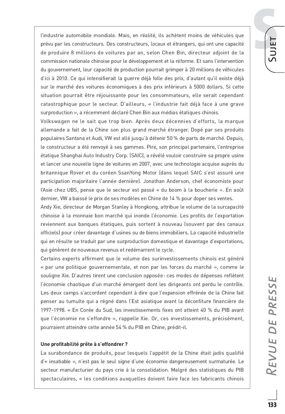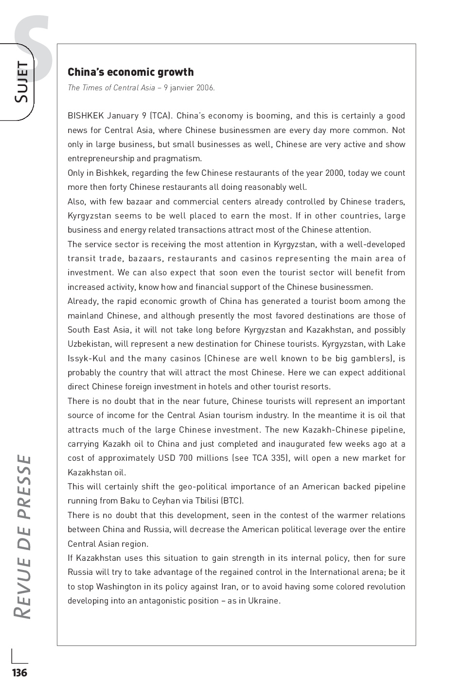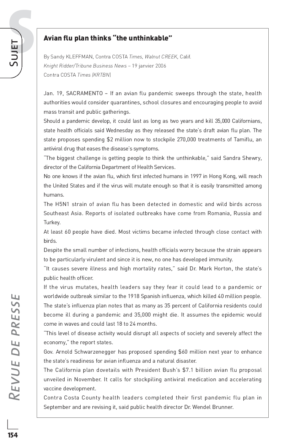 Concours PASS 2006 - Synthèse de revue de presse internationale (Sujet)