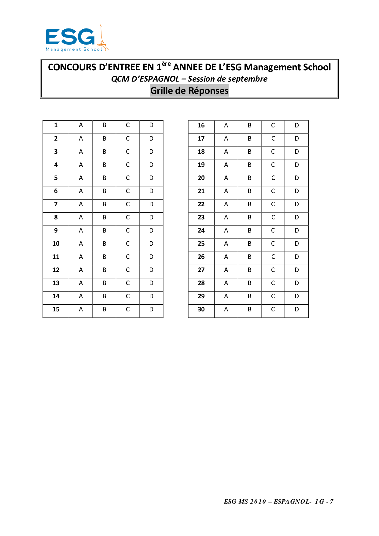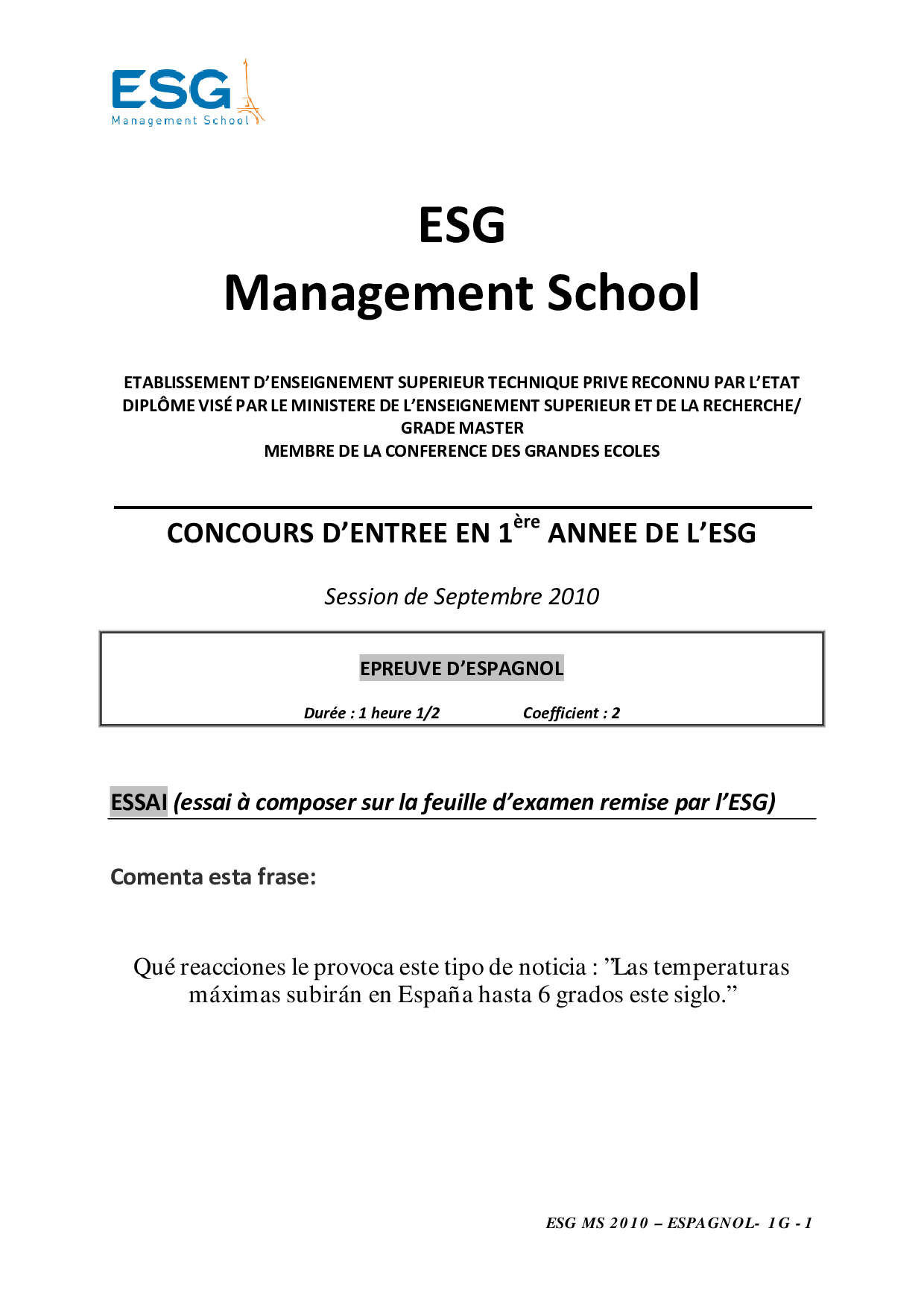 Concours LINK 2010 - Espagnol (Sujet)