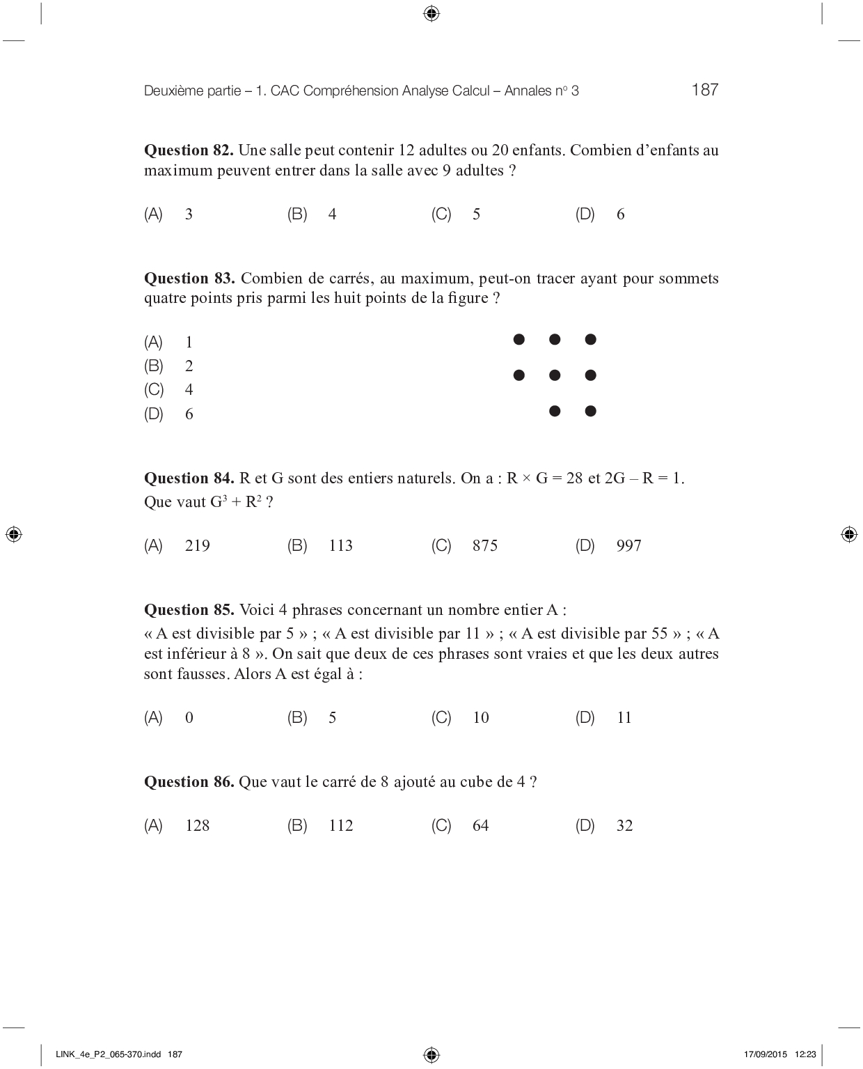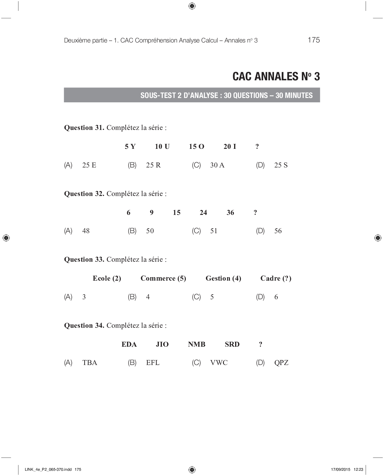 Concours LINK 2015 - CAC 3 (Compréhension, Analyse, Calcul - Sujet)