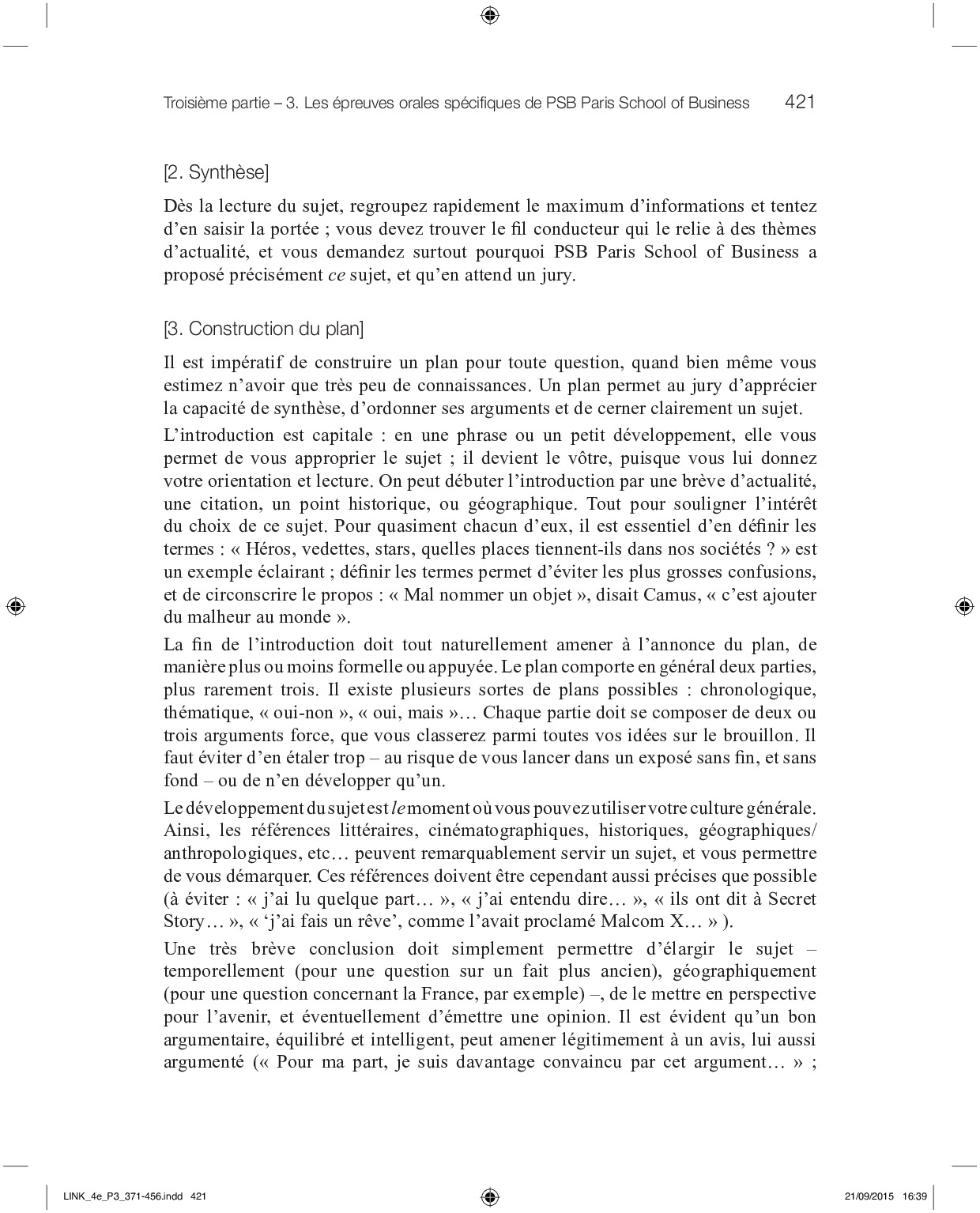 Épreuve orale specifique - PSB Paris School of Business