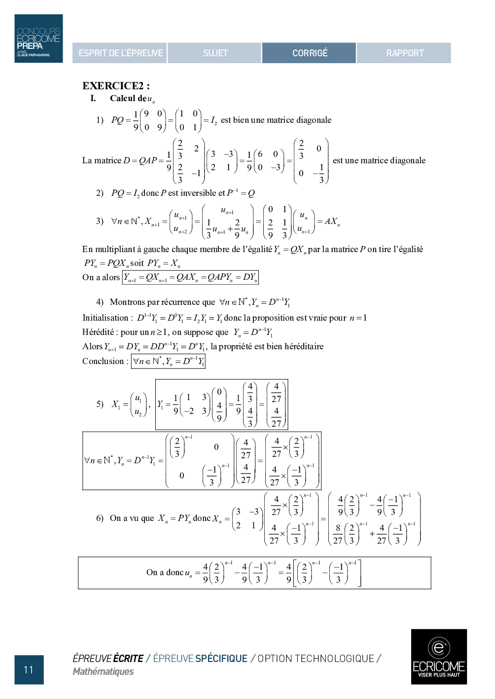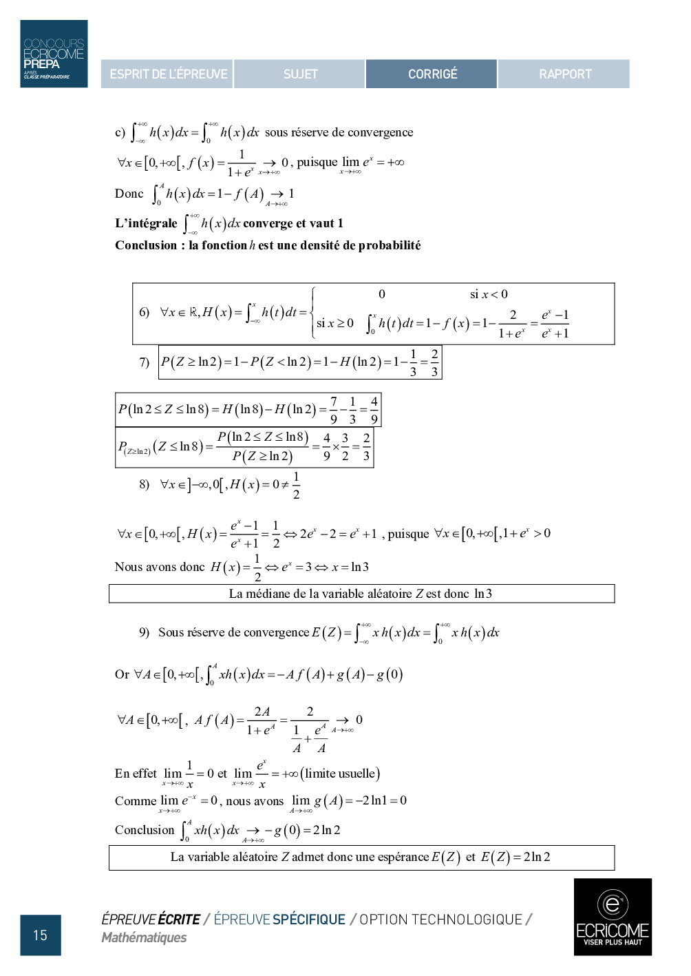 Concours Ecricome Prépa 2014 - Mathématiques (Option technologique - Corrigé)