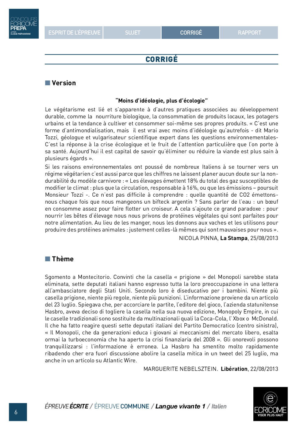 Concours Ecricome Prépa 2014 - Italien LV1 (Corrigé)