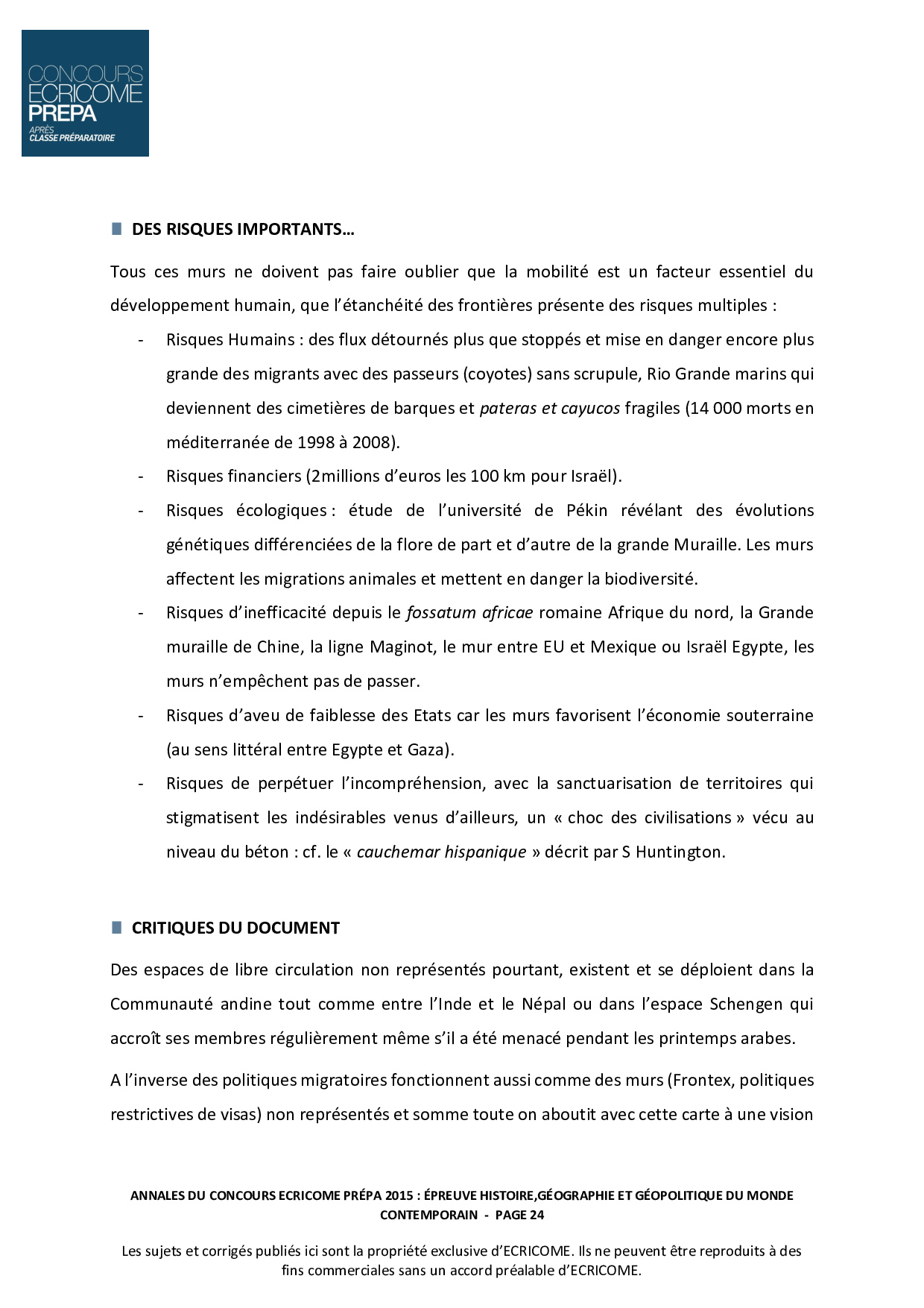 Concours Ecricome Prépa 2015 - Histoire, géographie et géopolitique du monde contemporain (Corrigé)