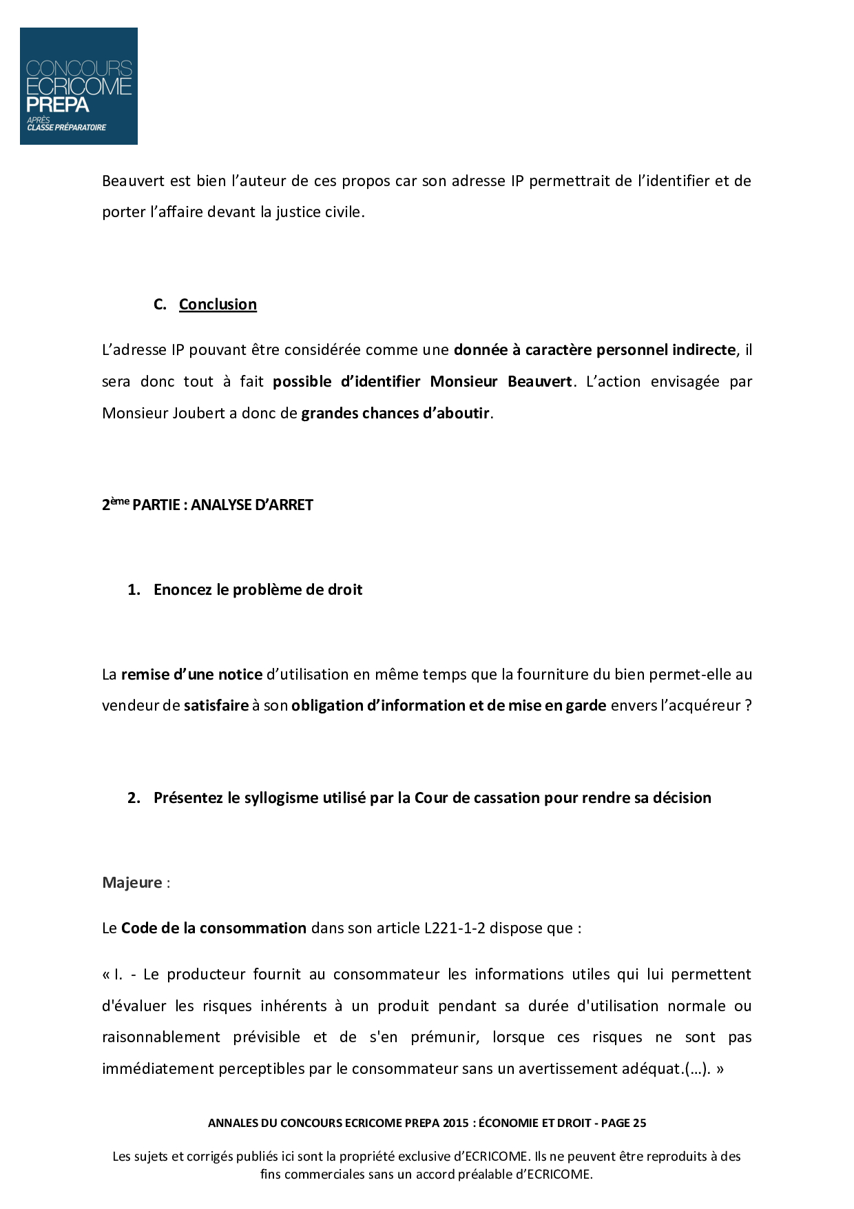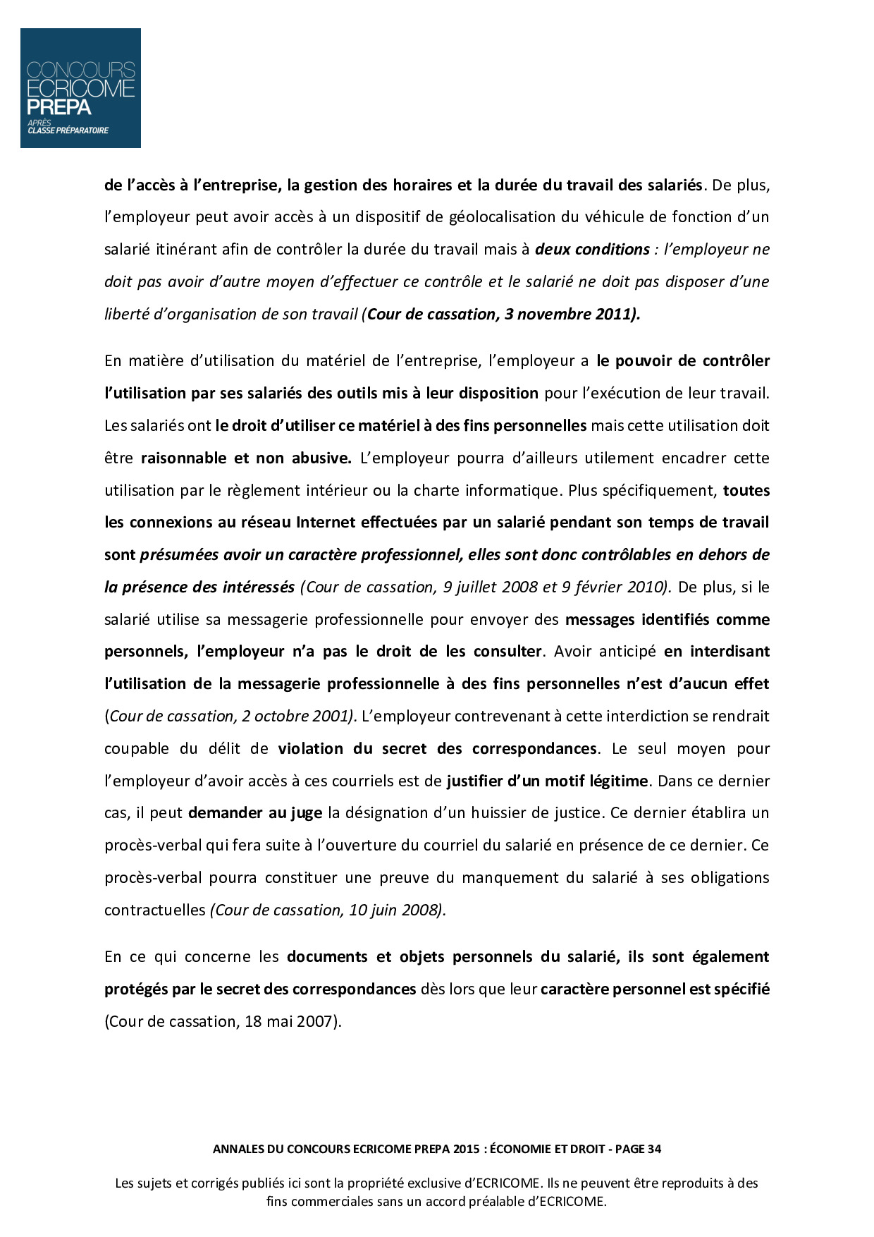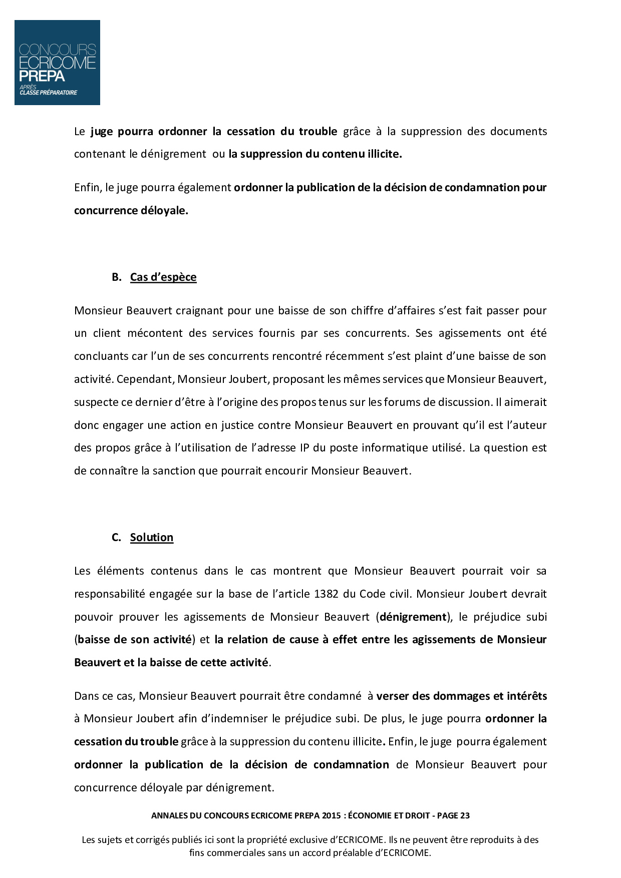 Concours Ecricome Prépa 2015 - Économie et droit (Corrigé)