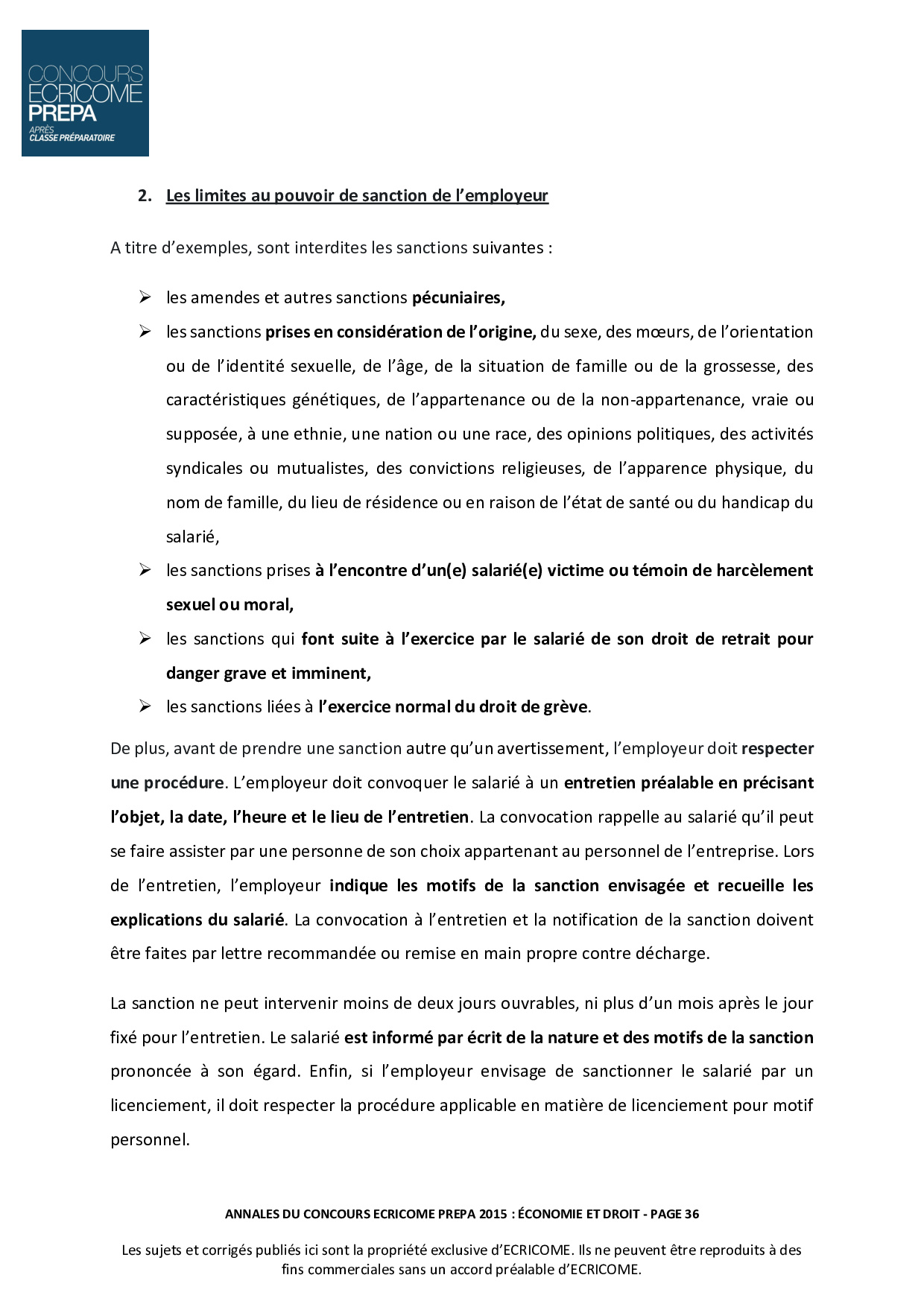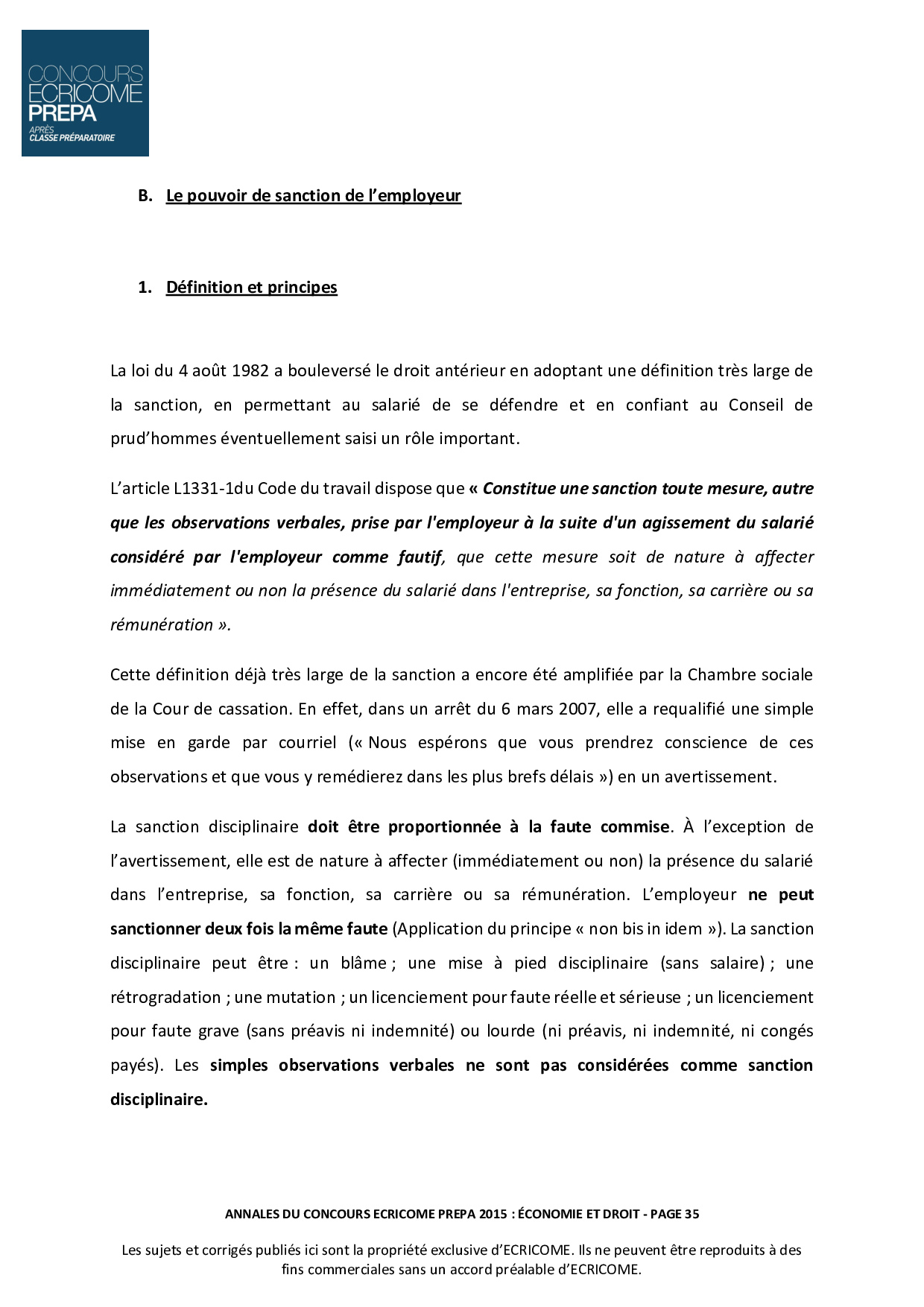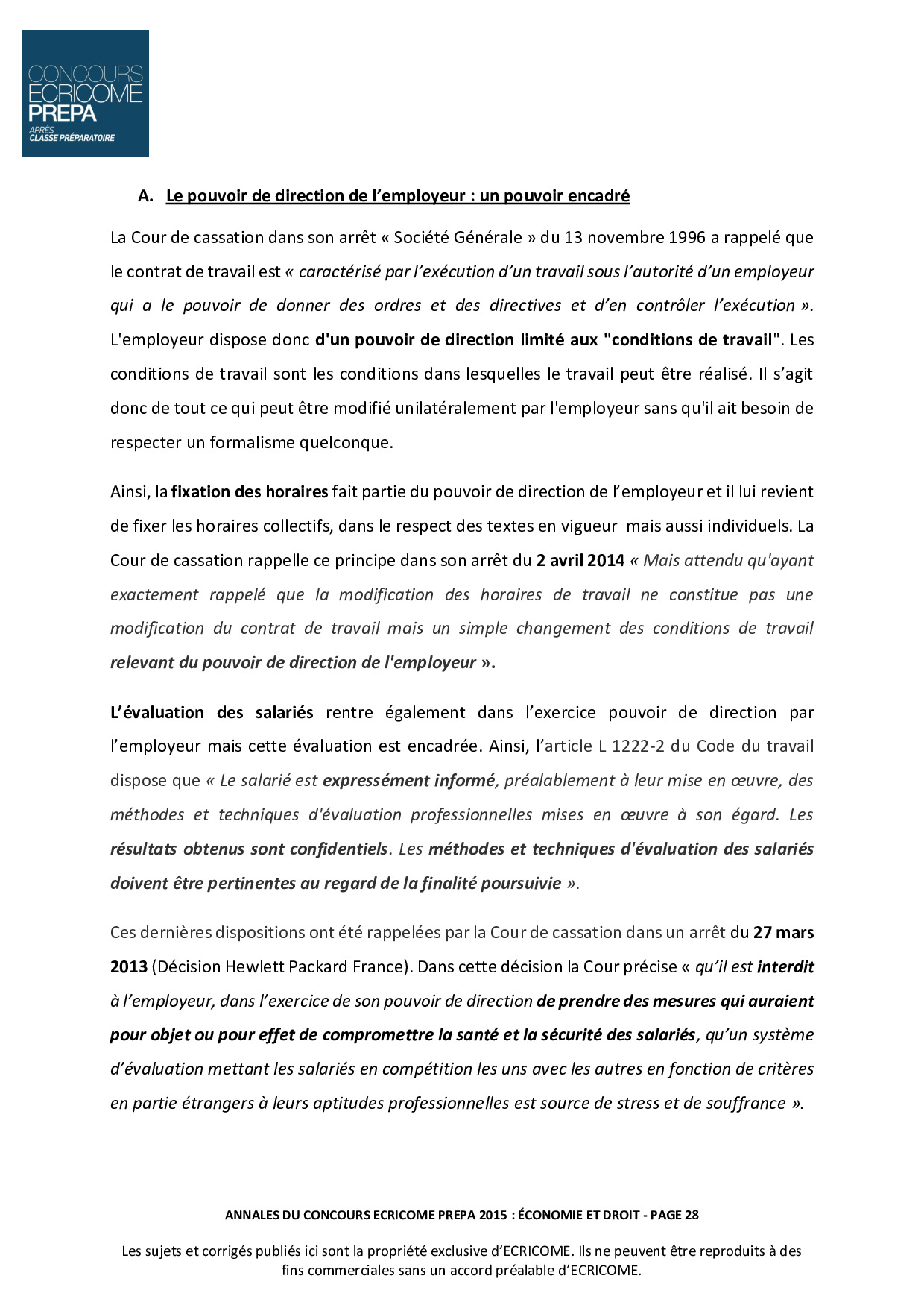 Concours Ecricome Prépa 2015 - Économie et droit (Corrigé)