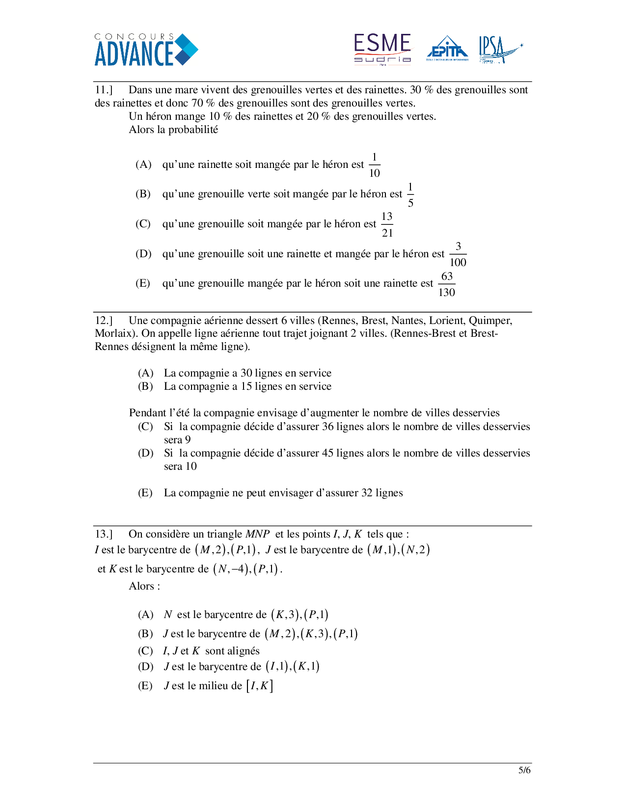 Concours ADVANCE 2012 - Mathématiques (Sujet)