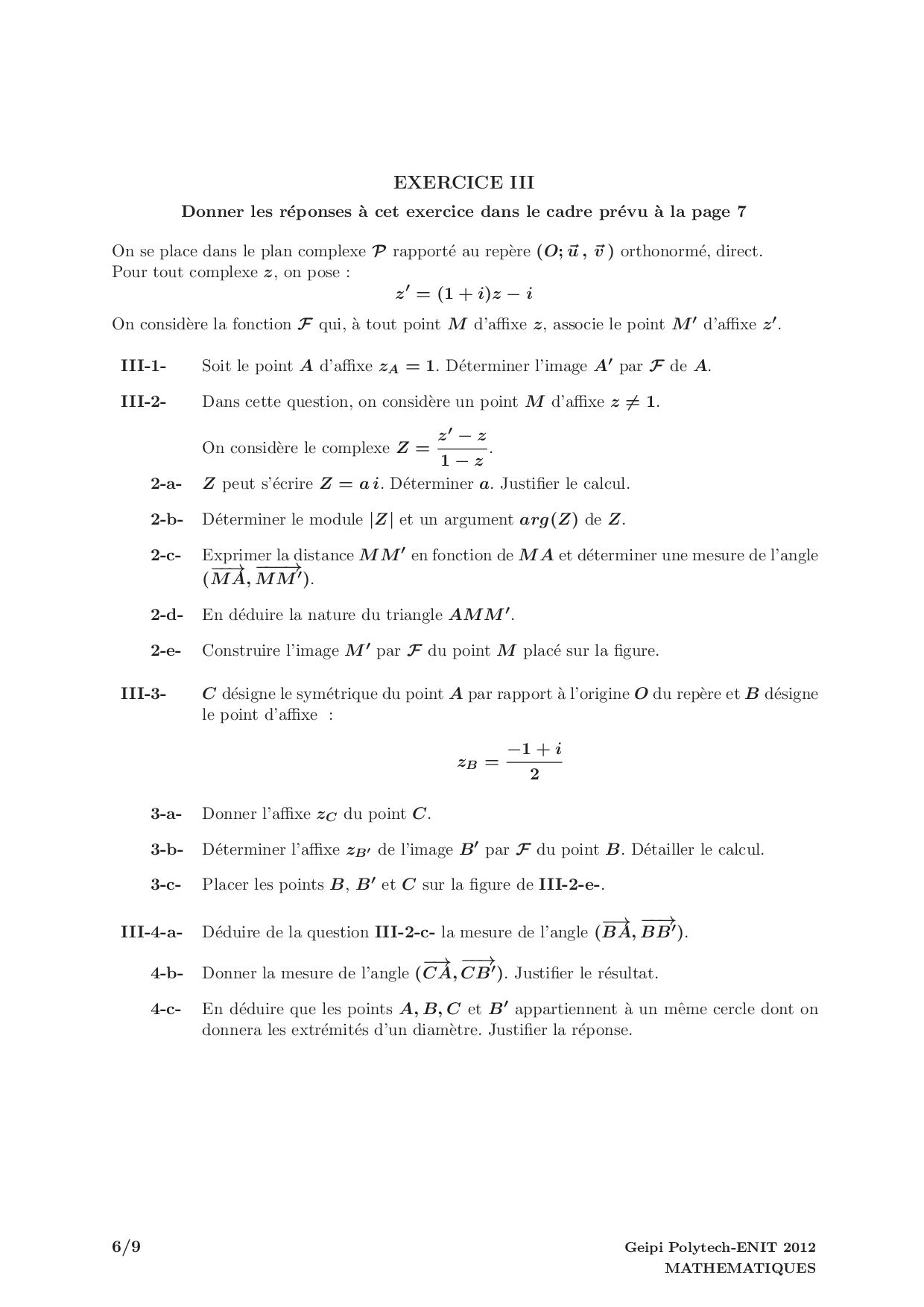 Concours Geipi Polytech 2012 - Mathématiques (Corrigé)