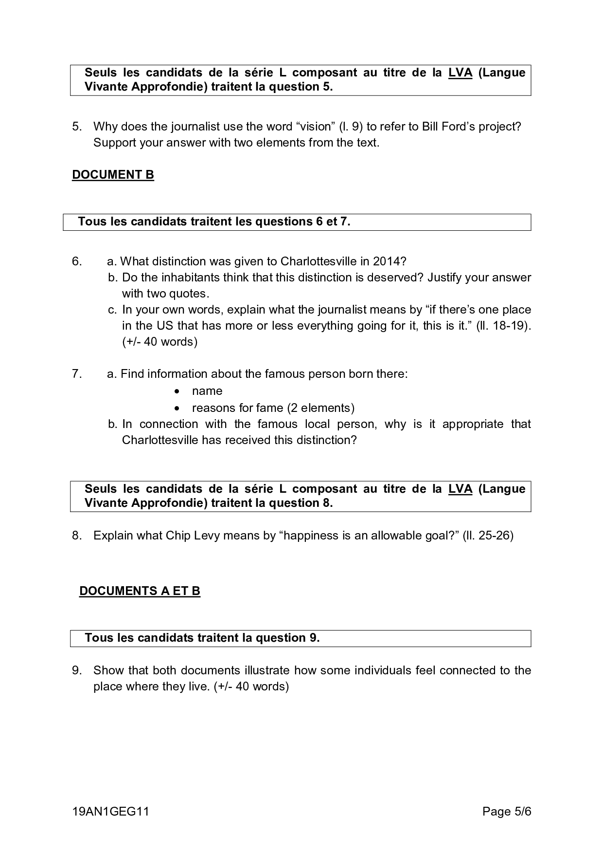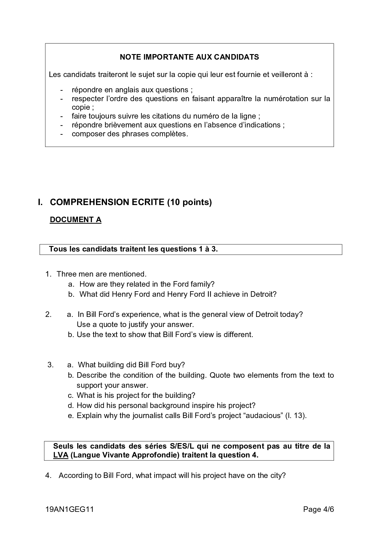 Bac S-ES-L Anglais LV1 Centres Etrangers Afrique 2019 - Sujet