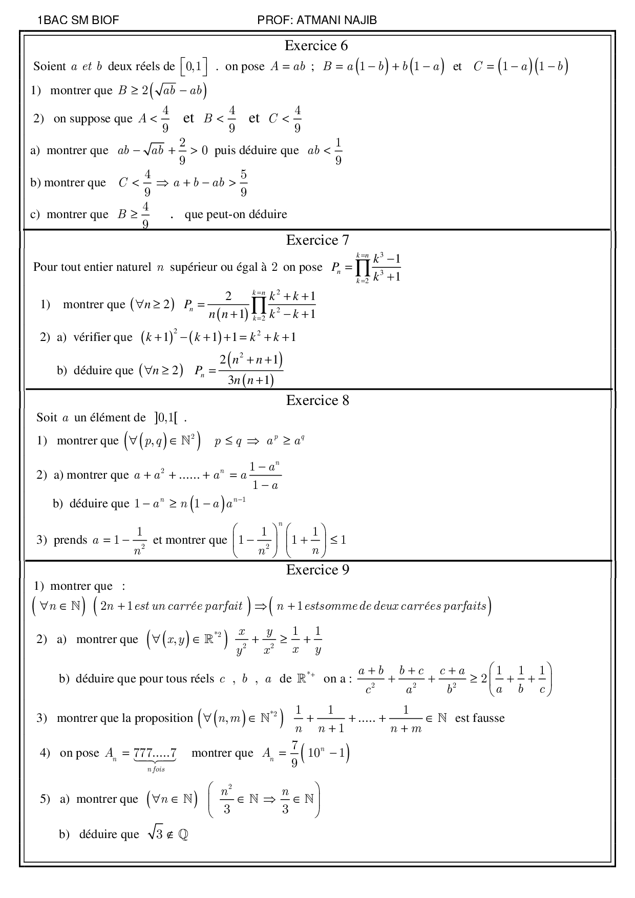 Mathématiques 1er BAC Sciences Mathématiques BIOF
