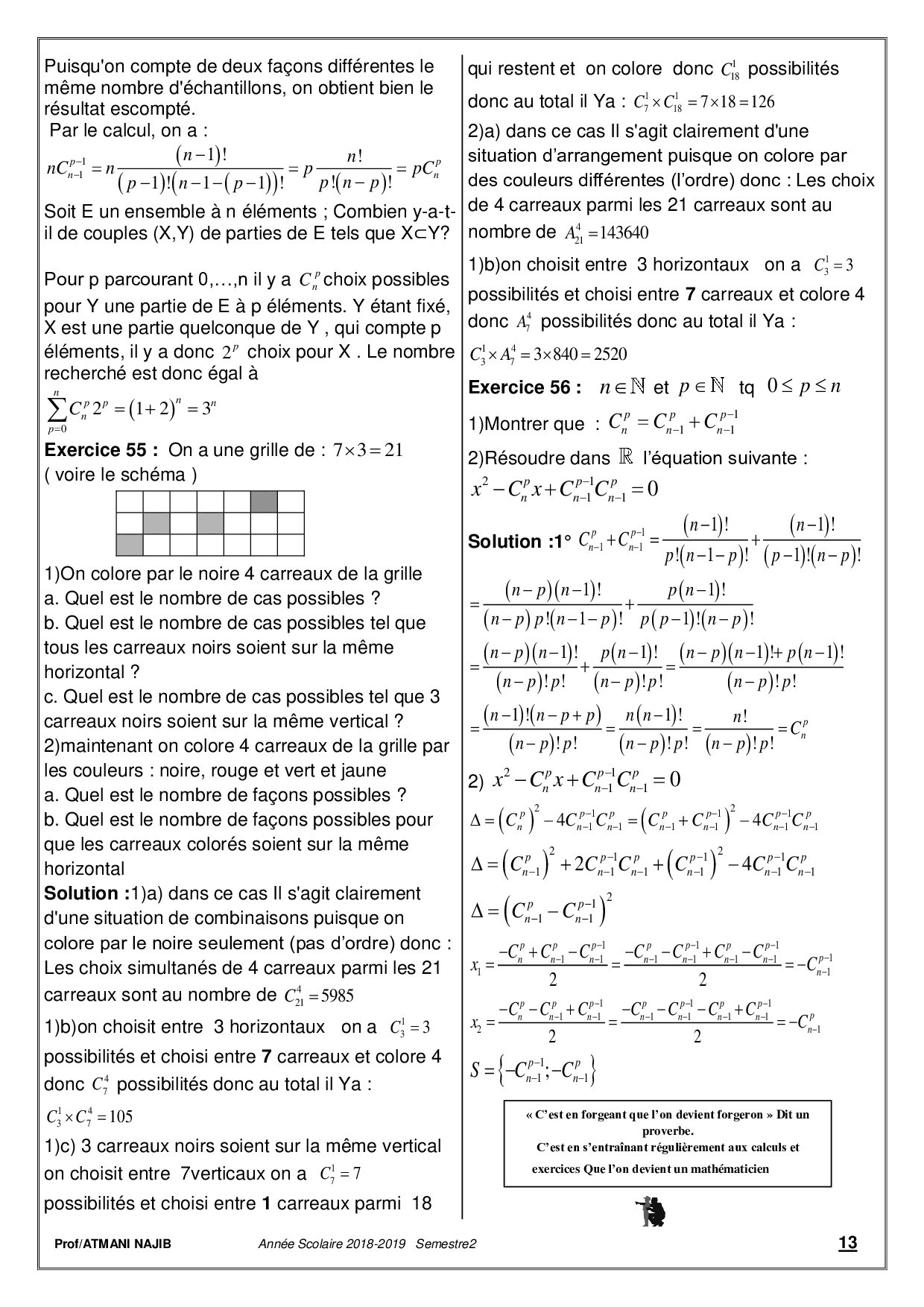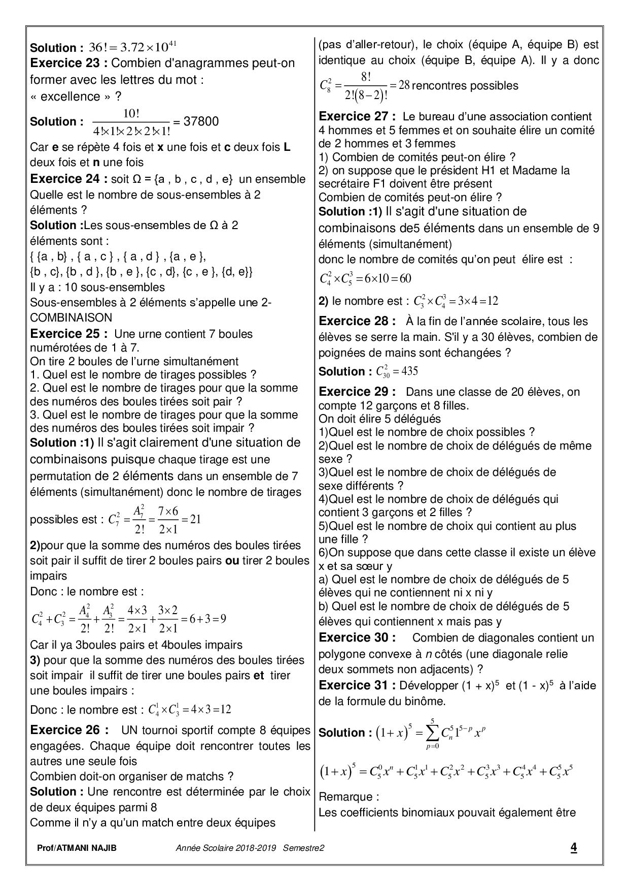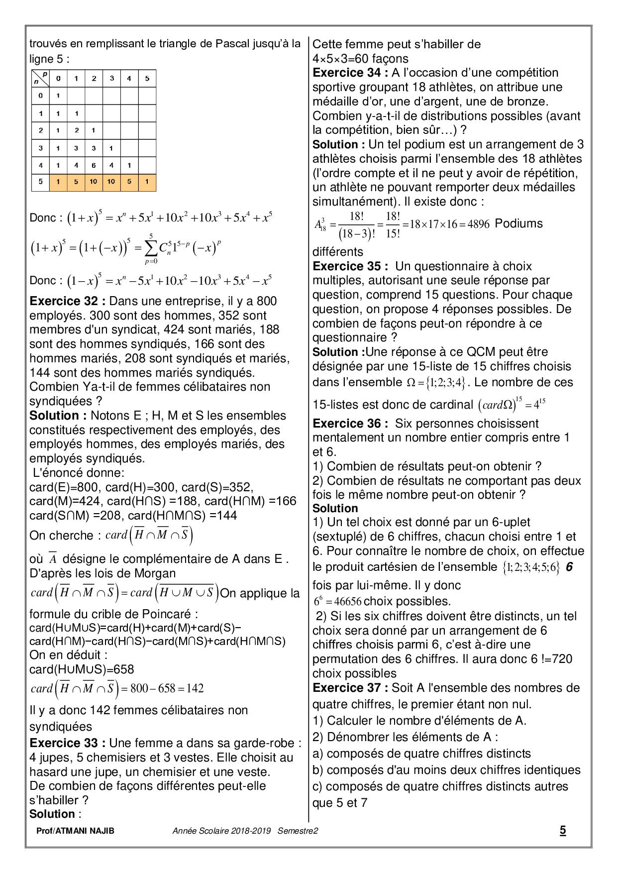 Dénombrement - Corrigé série d'exercices 1