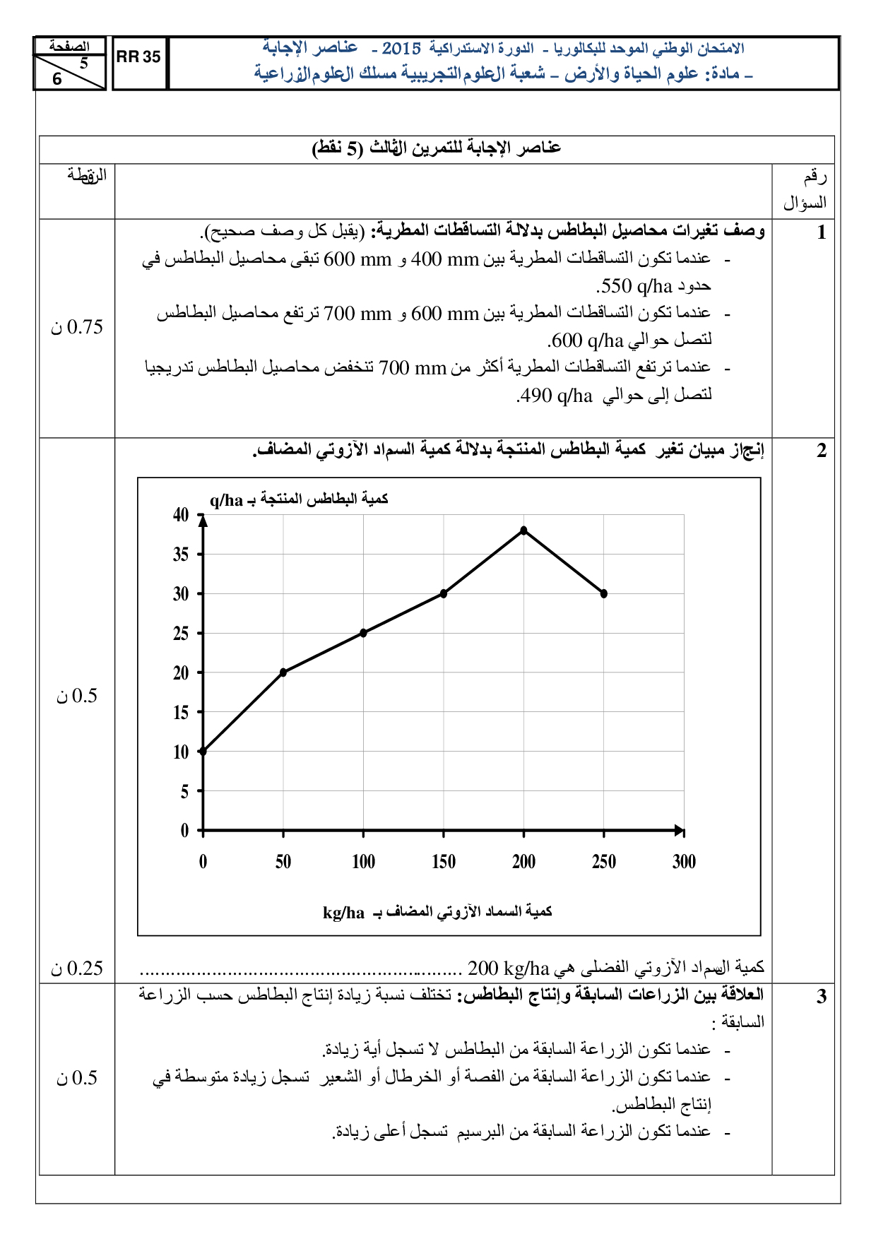 علوم الحياة والأرض (العلوم الزراعية) 2015 الدورة الإستدراكية - التصحيح