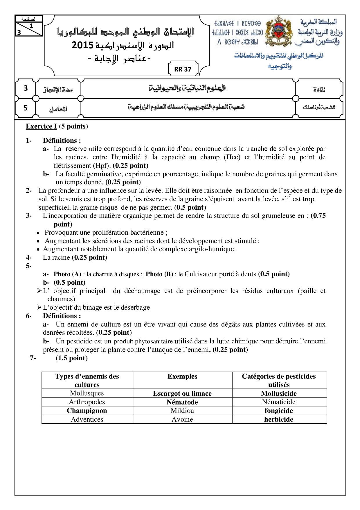 Examen Sciences Végétales et Animales 2015 Session Rattrapage - Corrigé