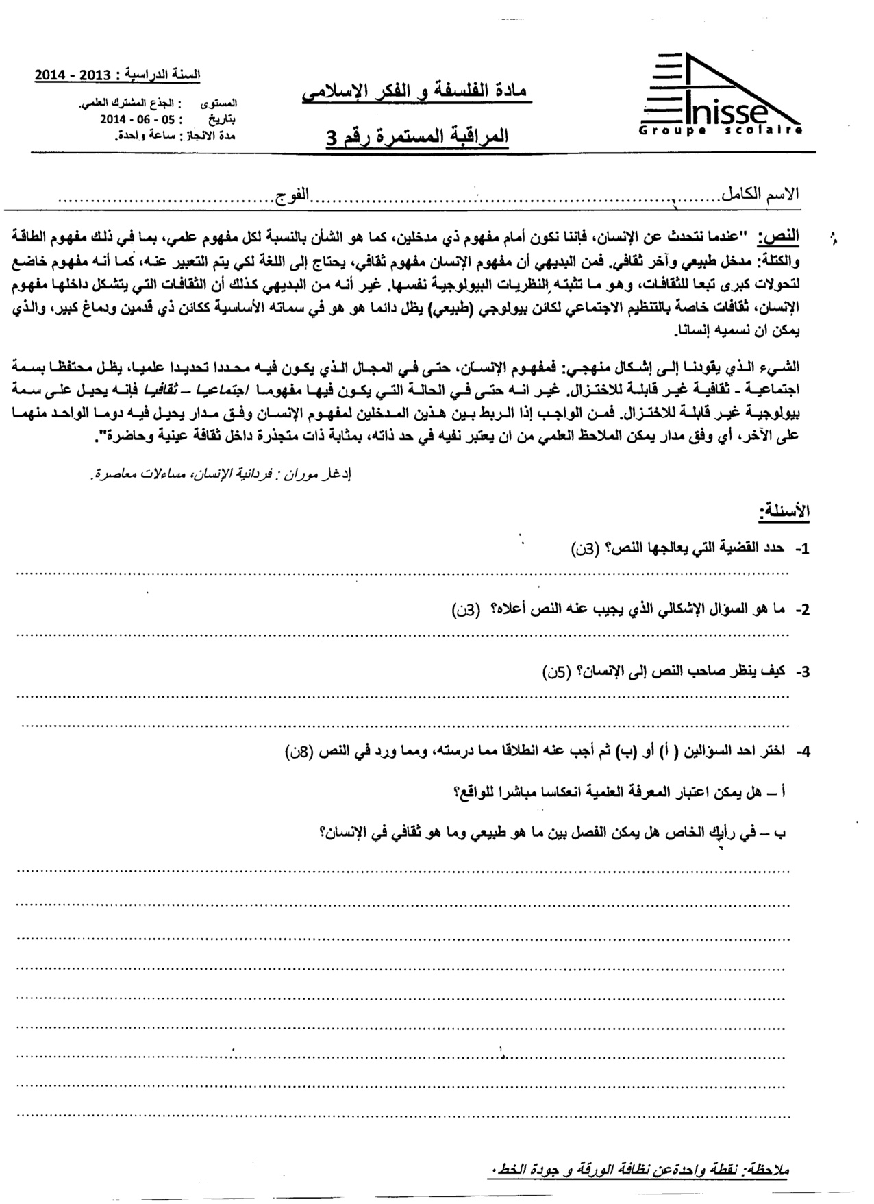 الفرض 3 نموذج 5 - الفلسفة جذع مشترك الدورة الثانية
