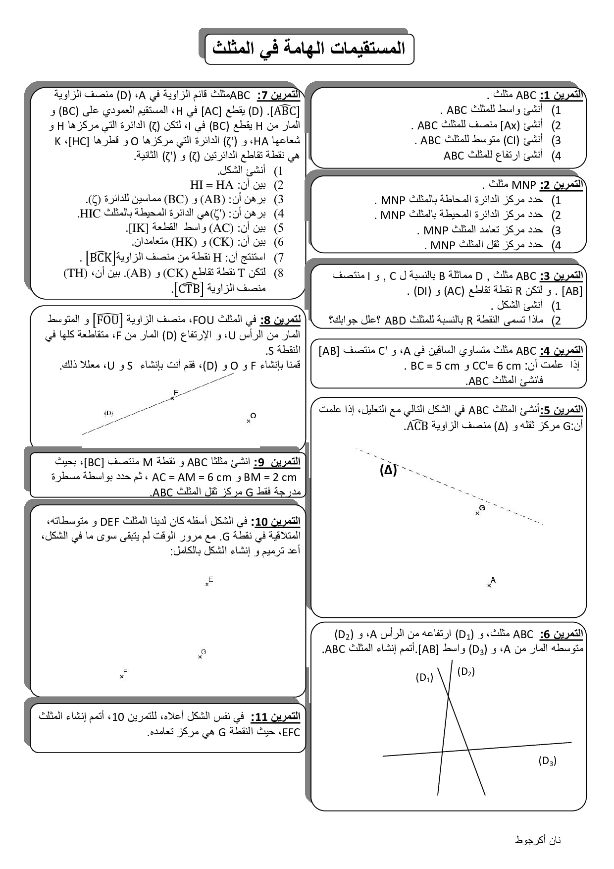 المستقيمات الهامة في مثلث - تمارين غير محلولة 3