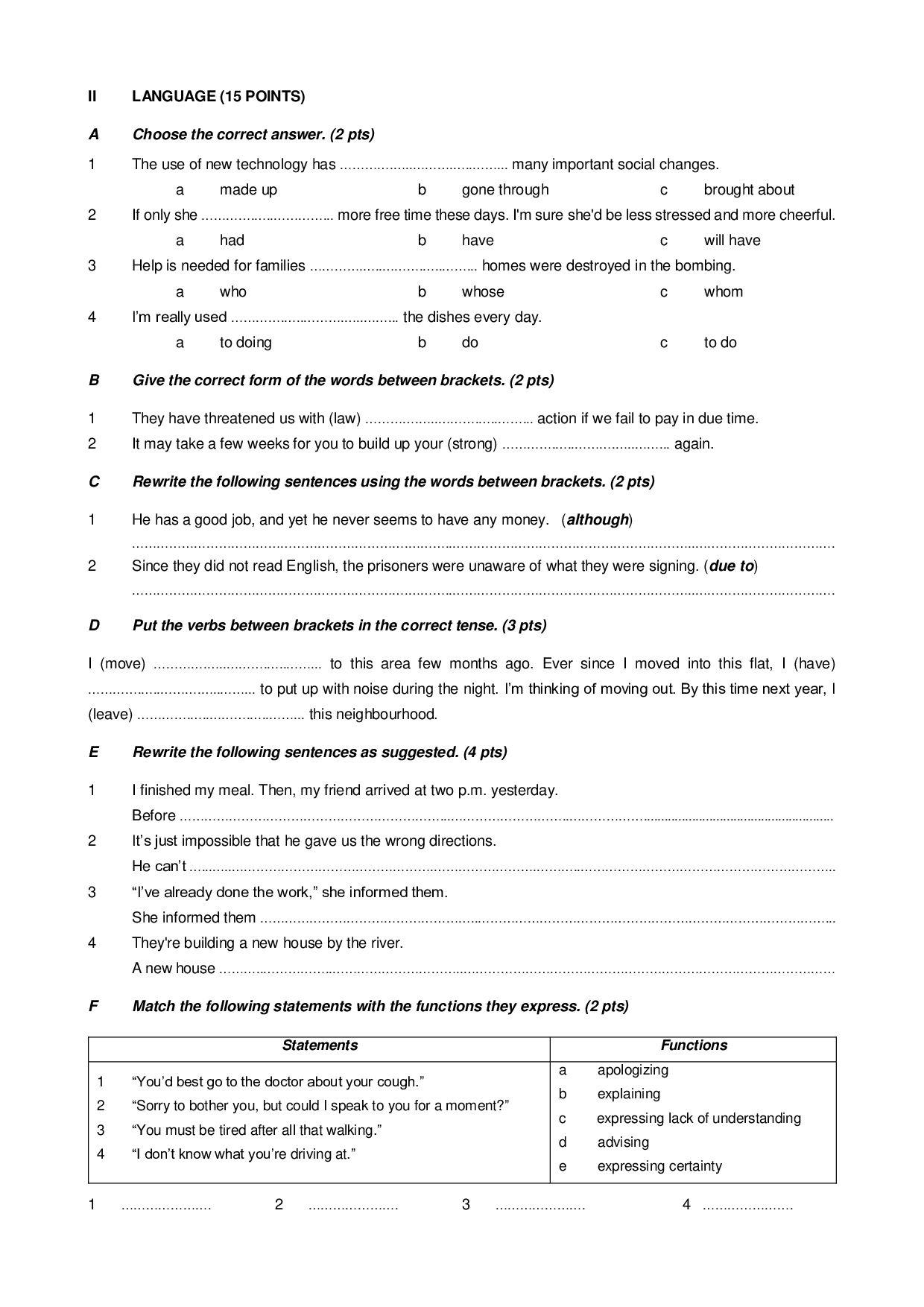 Second term english tests