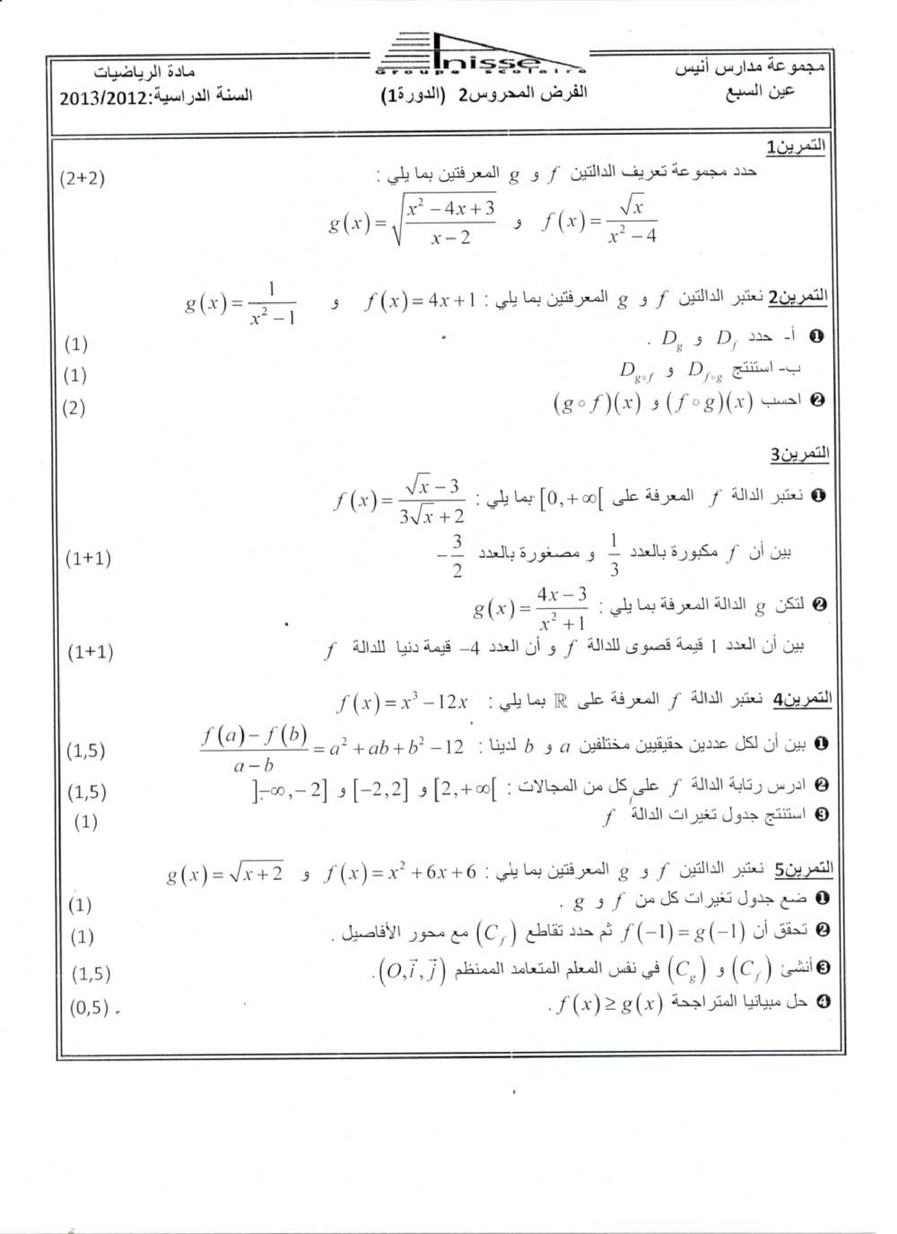 الفرض 2 نموذج 7 - الرياضيات أولى باك علوم إقتصادية الدورة الأولى