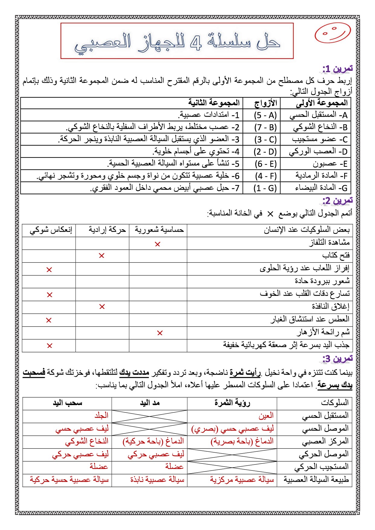 الجهاز العصبي - تصحيح سلسلة التمارين 4