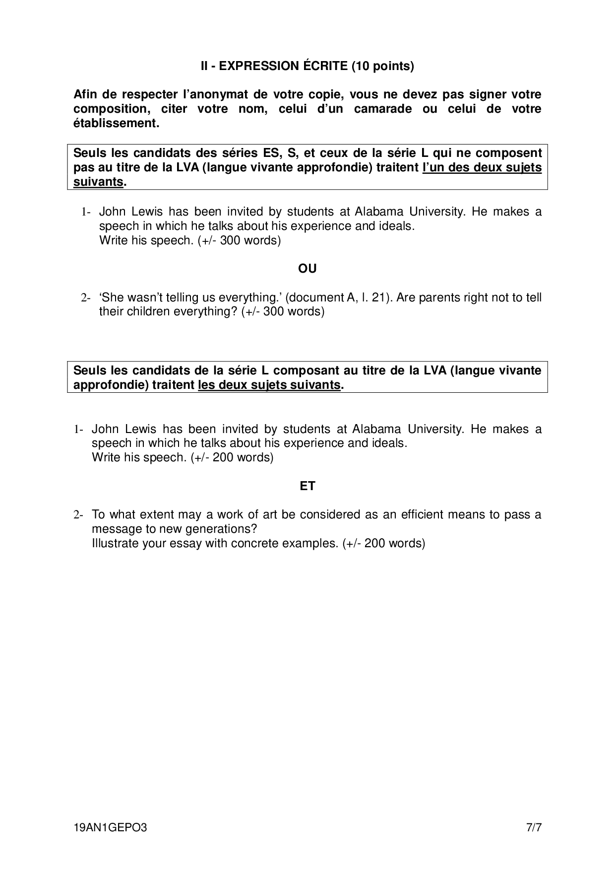 Bac S-ES-L Anglais LV1 Polynésie 2019 (Session de remplacement) - Sujet