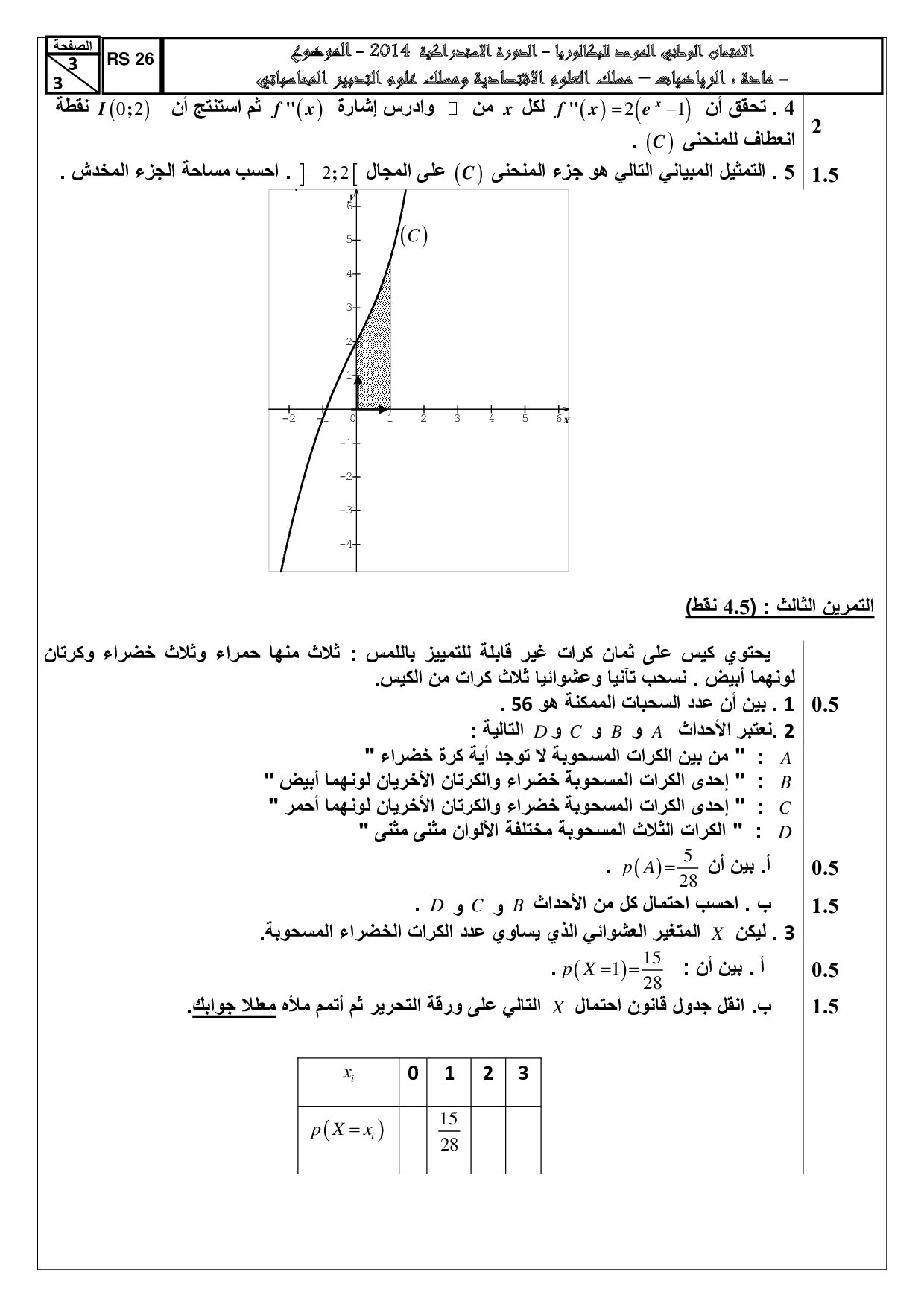 Examen National Maths 2Bac Eco-SGC 2014 Rattrapage - Sujet (Ar)